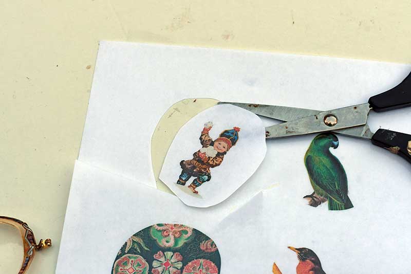 Step 2: Measure the size of the eyeglasses lens. Then select the vintage images you want to use for the ornaments and reduce them in size so that they will fit onto the lens. I selected a few of the pictures from Pictureboxblue that were festive or in festive colours.