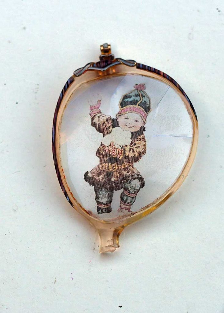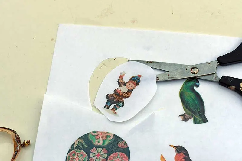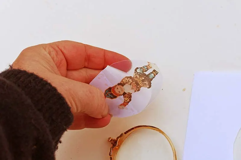 Another way to make upcycled ornaments with vintage images is to use old jam jar lids.