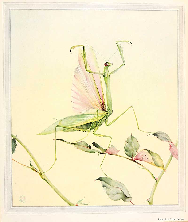 Jean-Henri Fabre was captivated by the Praying Mantis, often referring to it as a “ferocious and elegant predator.” He vividly described its hunting prowess, noting how it lies in wait with its forelegs poised, ready to snatch unsuspecting prey. Fabre admired its patience and precision, comparing its movements to a seasoned hunter’s. He also detailed the mantis’s life cycle, from the delicate hatching of eggs to the fierce battles between adults.