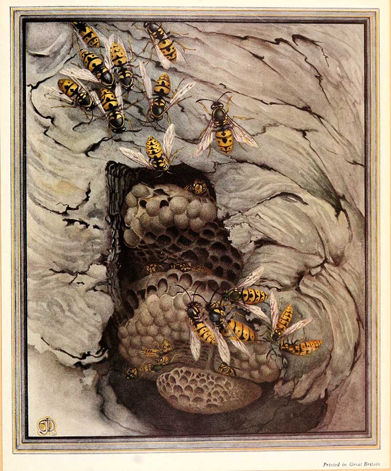 Fabre admired the common wap’s social structure and teamwork within the nest. He described how these wasps build intricate paper nests from chewed wood fibres mixed with saliva, showcasing their impressive engineering skills. He also noted their role as both predators and pollinators, capturing other insects to feed their larvae while aiding in pollination.