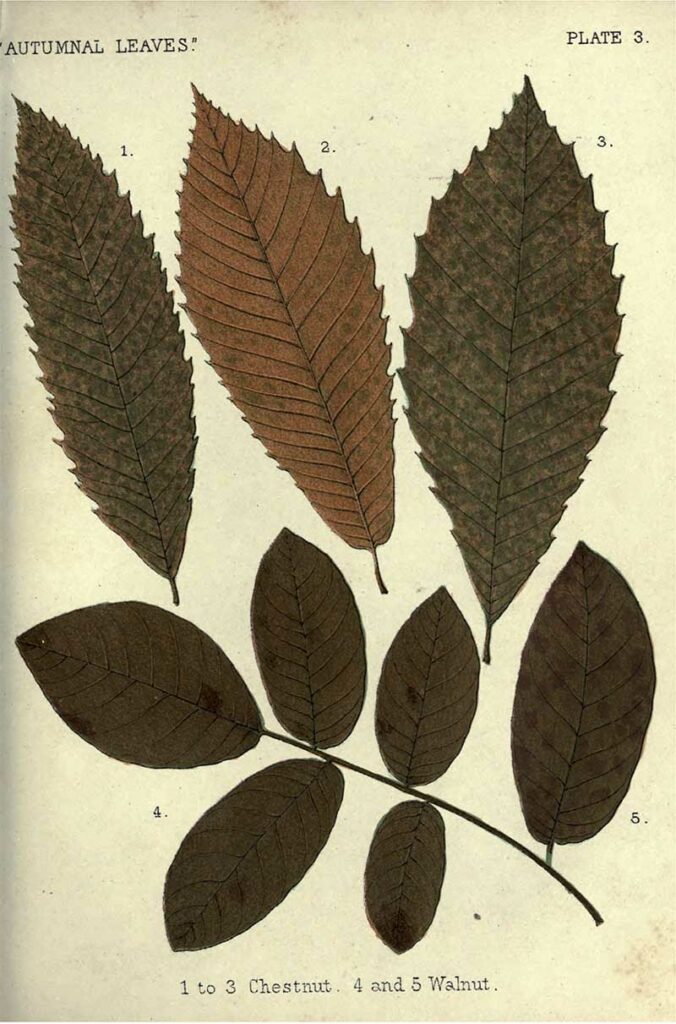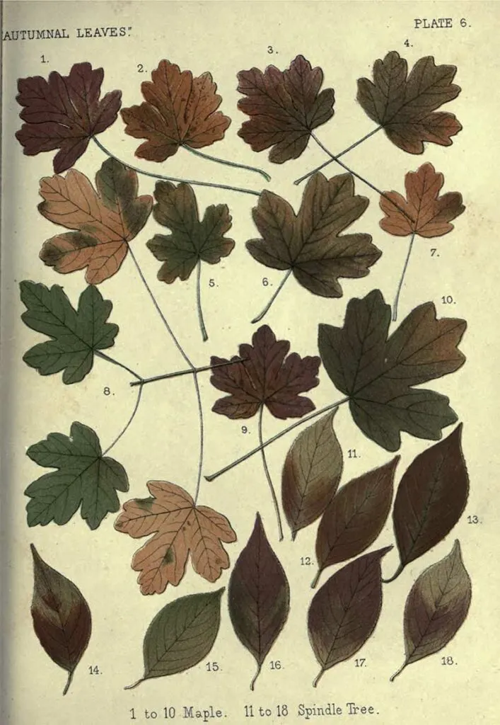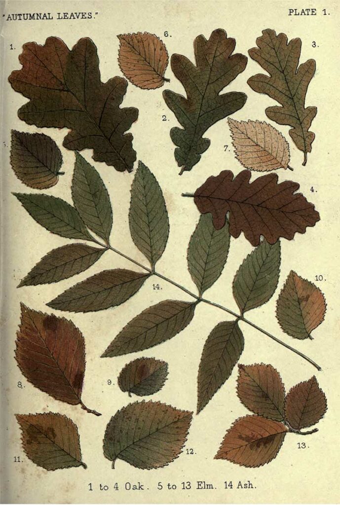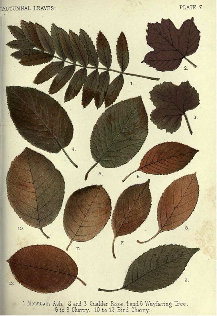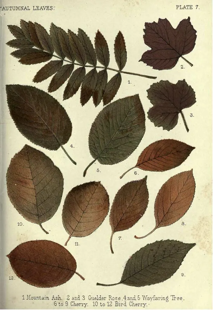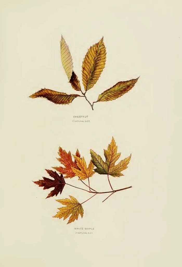 These fabulous autumn leaves charts are from a vintage book “Autumnal leaves” by Francis George Heath, published in 1885.