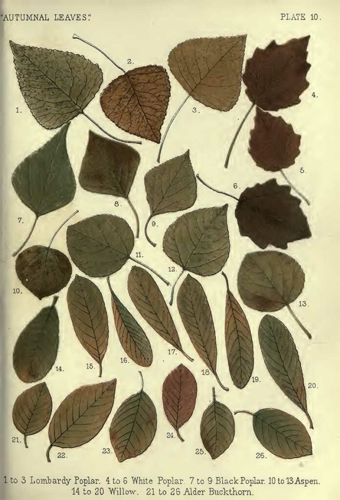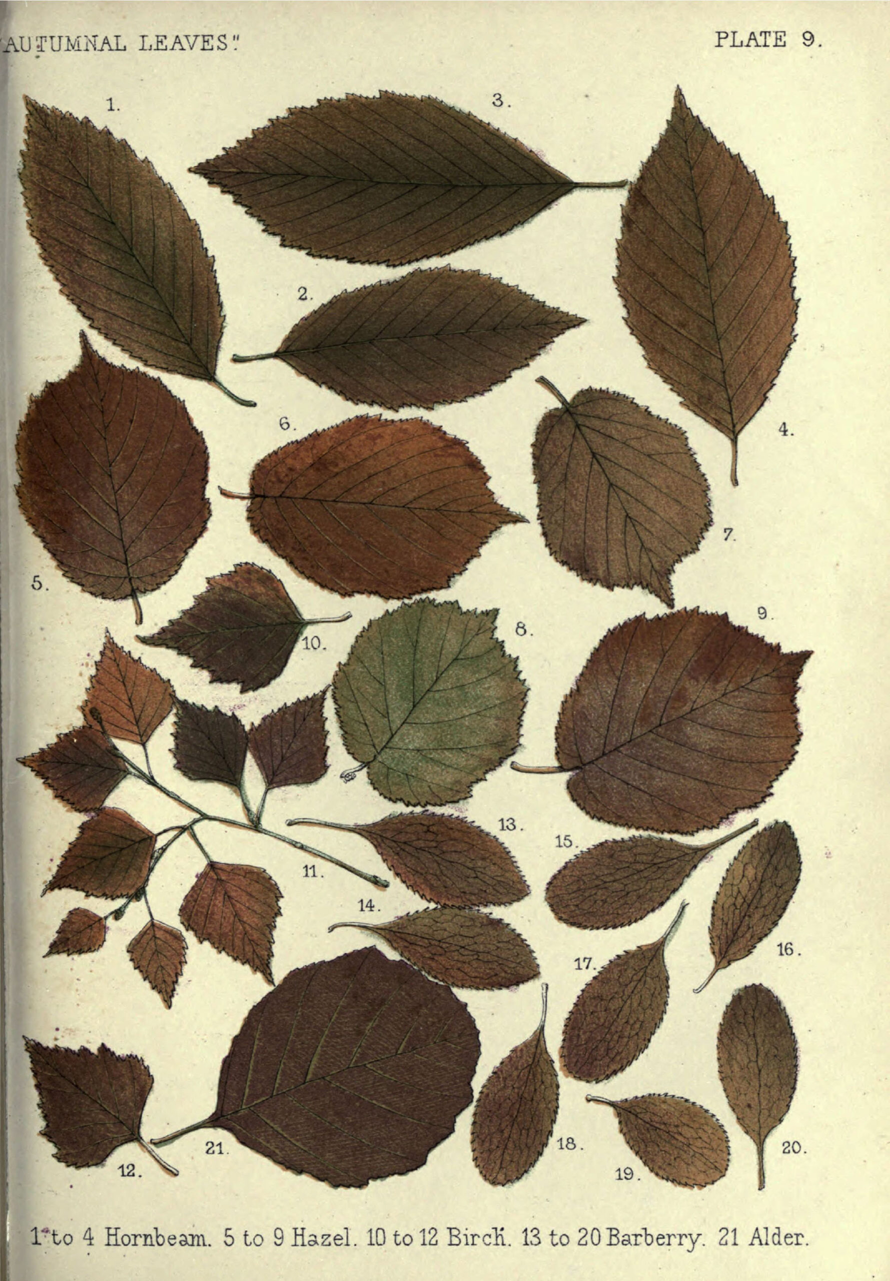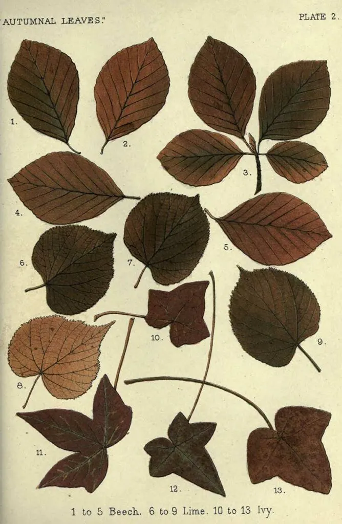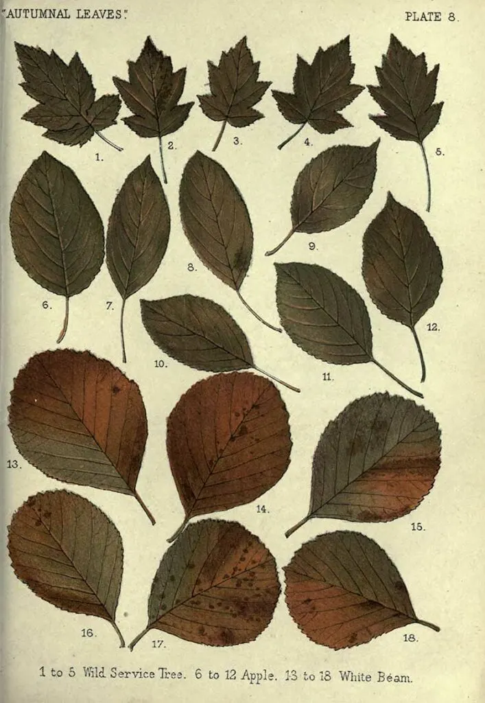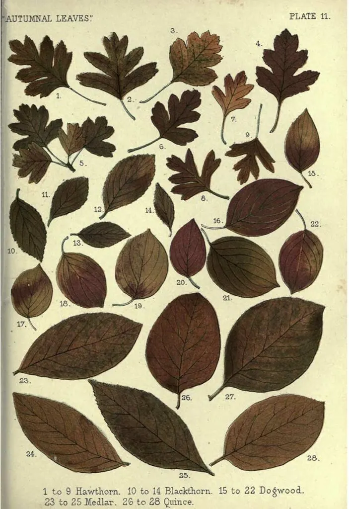 These fabulous autumn leaves charts are from a vintage book “Autumnal leaves” by Francis George Heath, published in 1885.