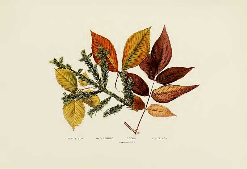 White Elm, Red Spruce, Beech & White Ash autumn foliage.