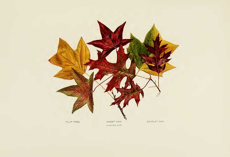 While searching for the fall leaf illustrations above, I also came across these more colorful examples. As these leaves show the beauty of the fall colours, I thought it would be great to share them as well.
