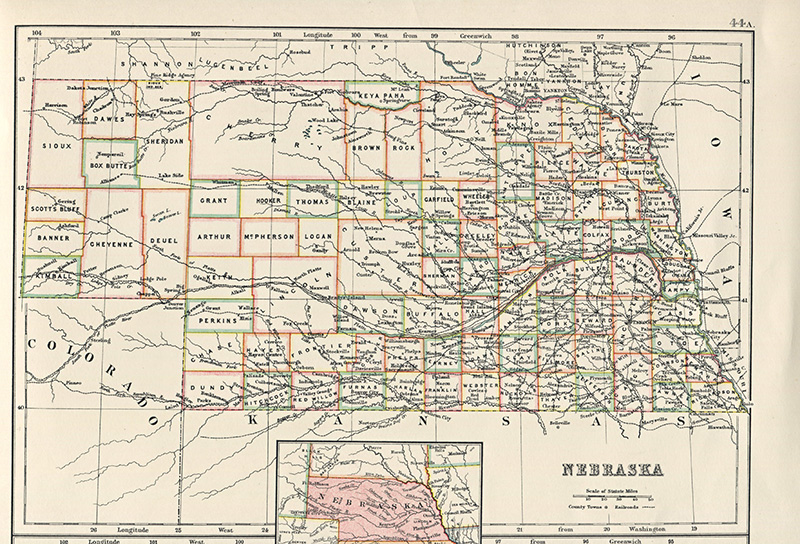 These gorgeous antique US State Maps of the Western United States come from an original US Atlas circa 1885. Unfortunately, I don’t have details of the original publishers as these maps were purchased loose as individual pages.
