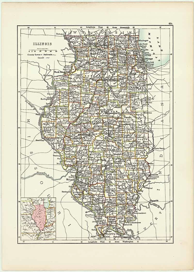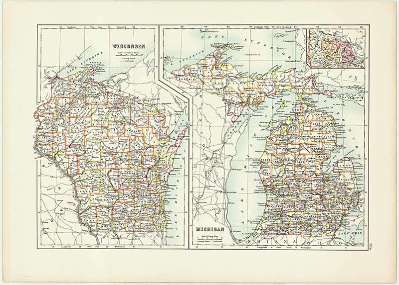 Free Antique US State Maps of Illinois, Pennsylvania, North & South Dakota, Virginia, Kentucky, Ohio, Michigan, Nebraska, Wisconsin & Minnesota