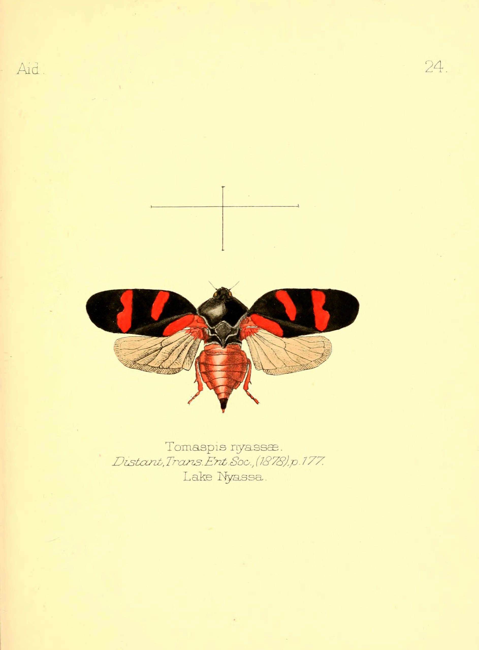There is not much information about this black and red-winged insect except that was found at Lake Nyassa. The lake is an African Great Lake and the southernmost lake in the East African Rift system, located between Malawi, Mozambique and Tanzania.