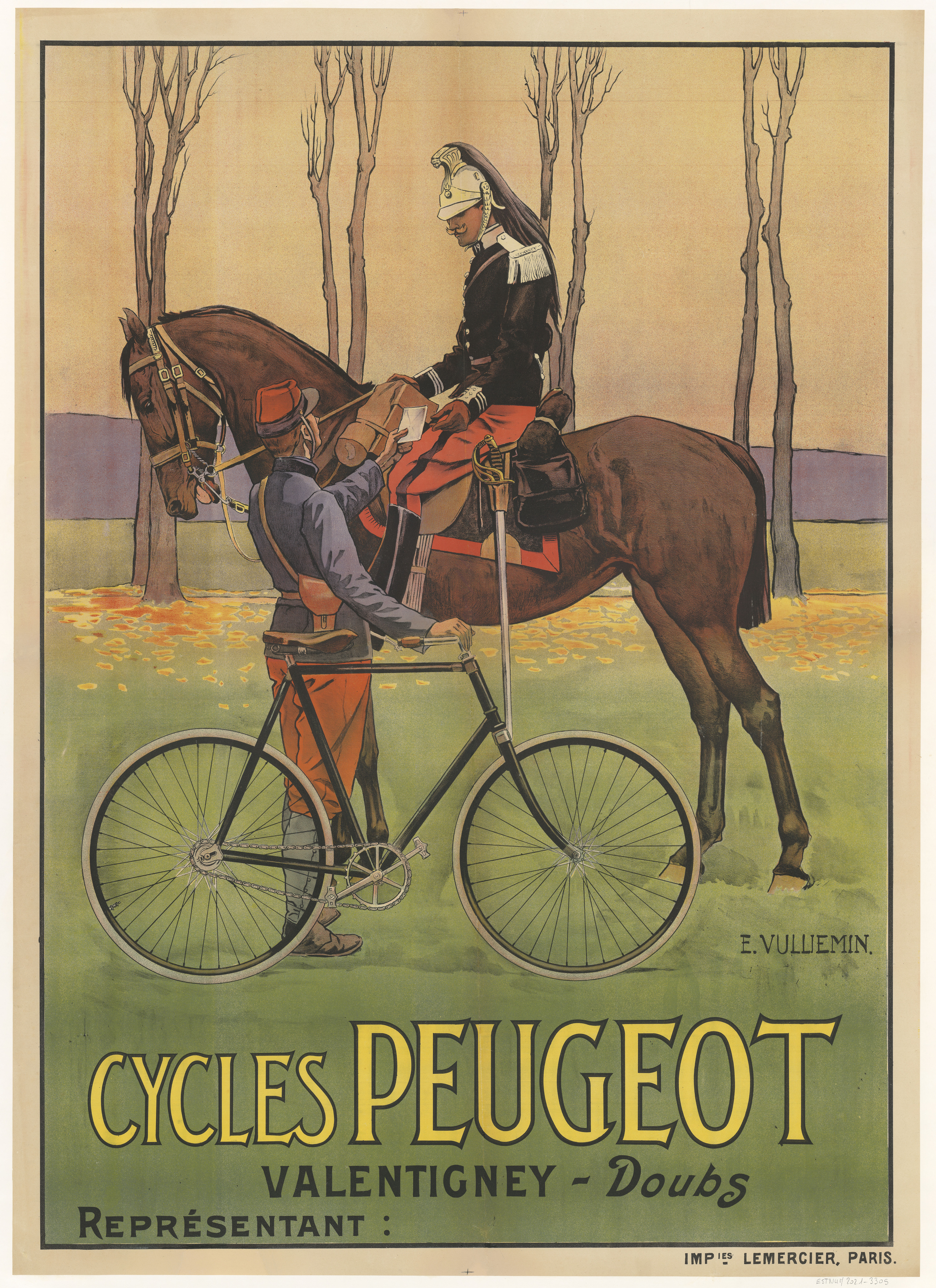 French poster for Peugeot Cycles by Vulliemin, Ernest (1862-1900).