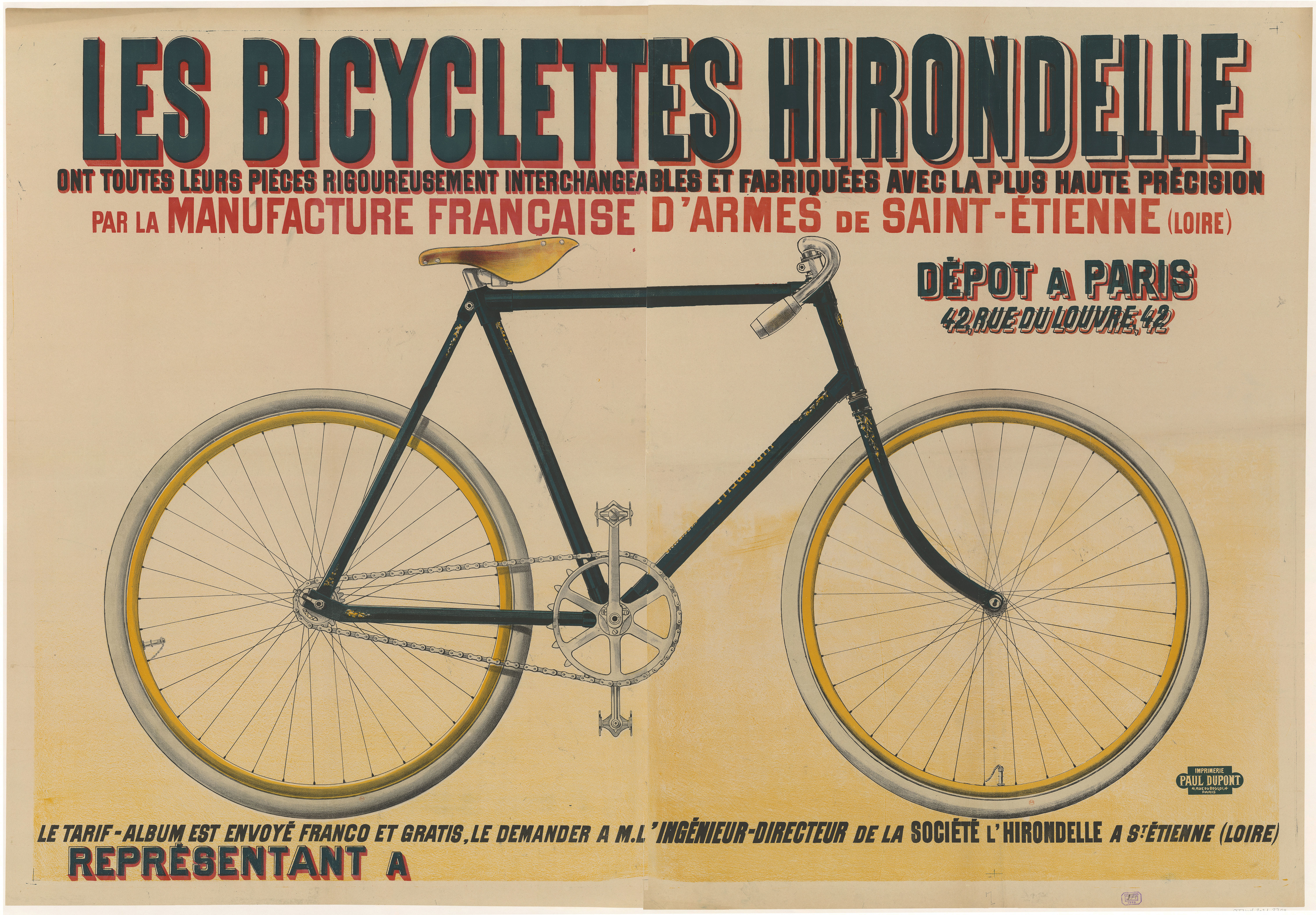 “The Bicyclettes Hirondelle have all their parts rigorously interchangeable and manufactured with the highest precision by the Manufacture Française d’armes of Saint-Etienne.“