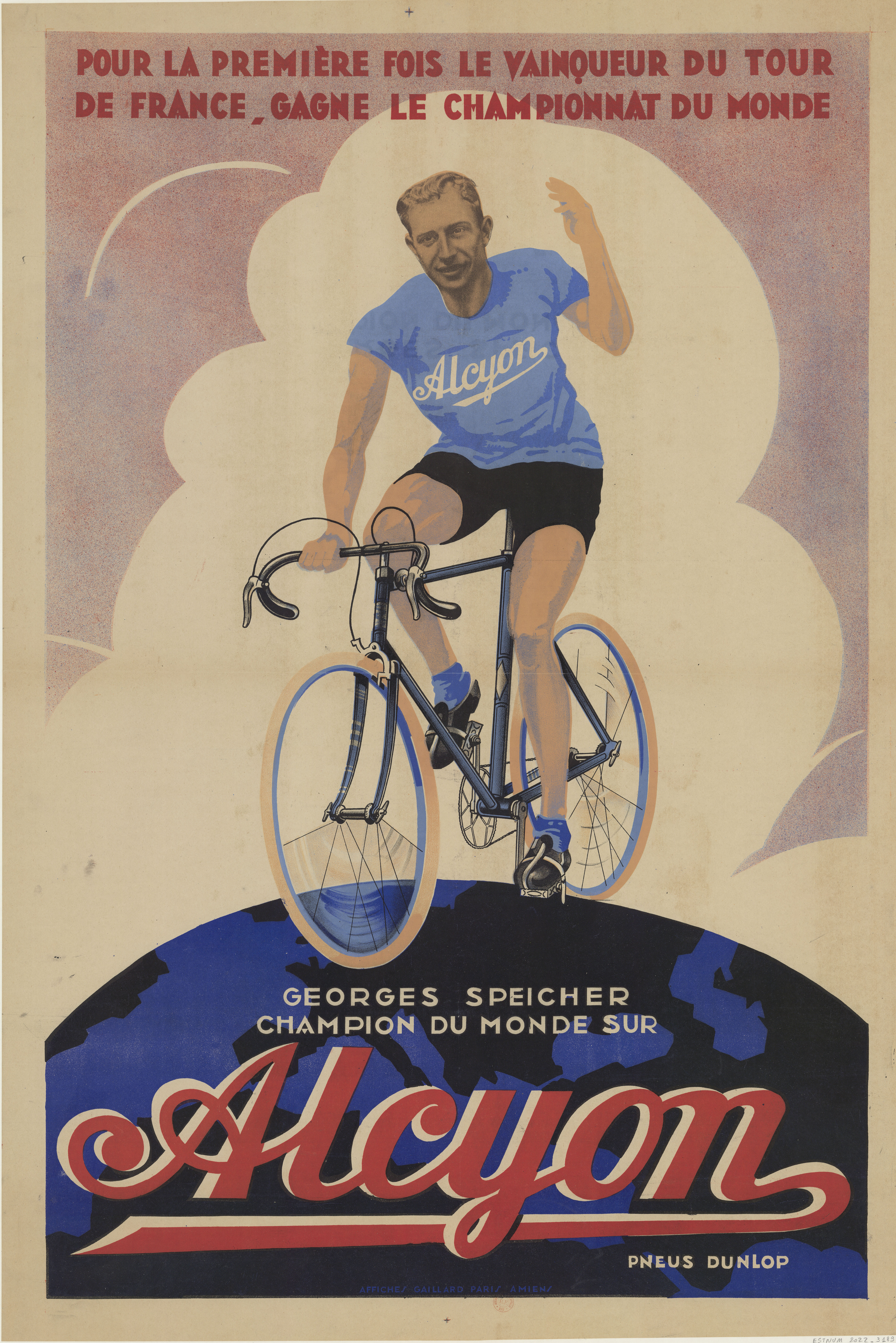For the first time the winner of the Tour de France wins the world championship. Georges Speicher, world champion on Alcyon, Dunlop tires