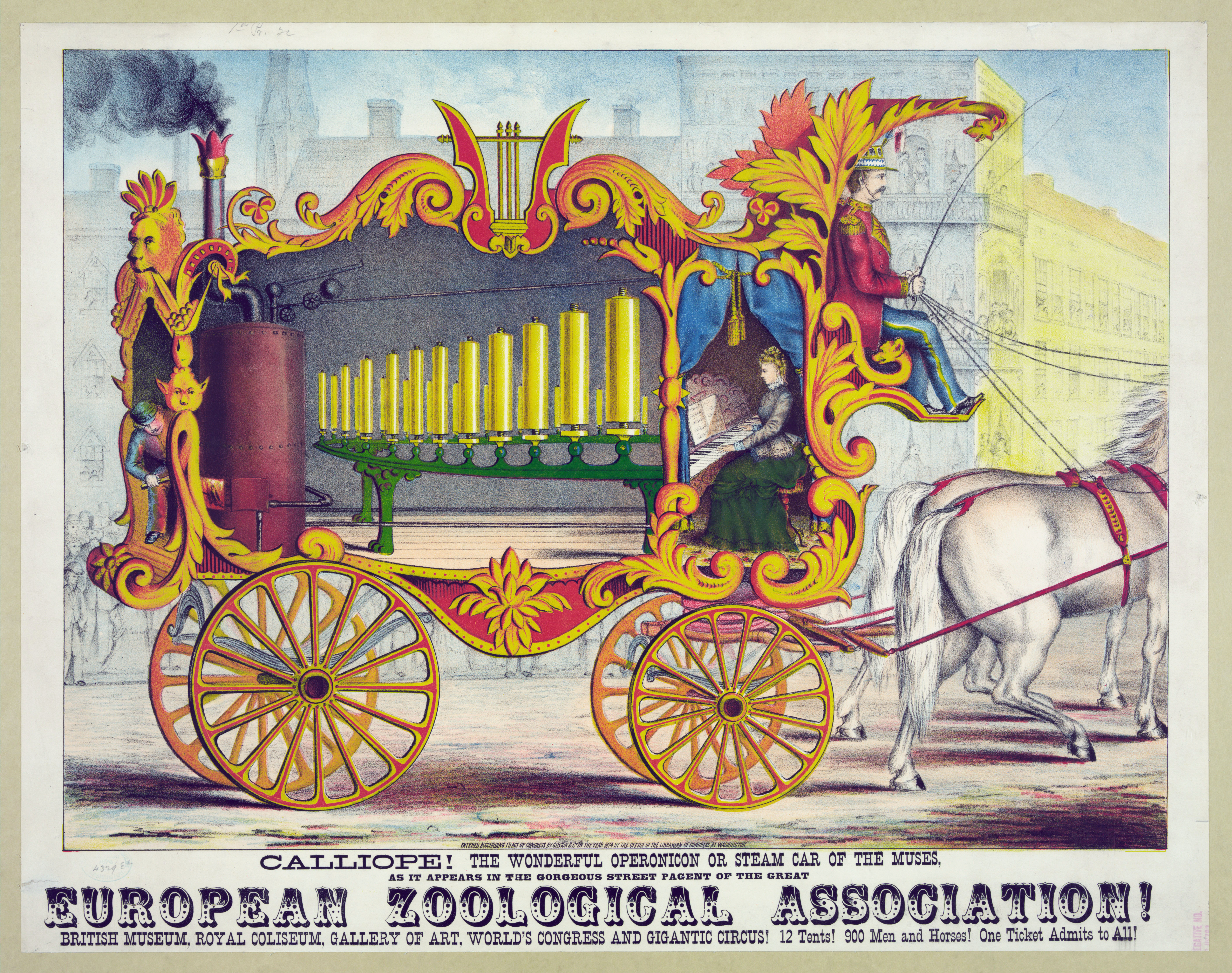 Gibson & Co. Circus Poster : “Calliope! The Wonderful Operonicon or Steam Car of the Muses” (1874).
