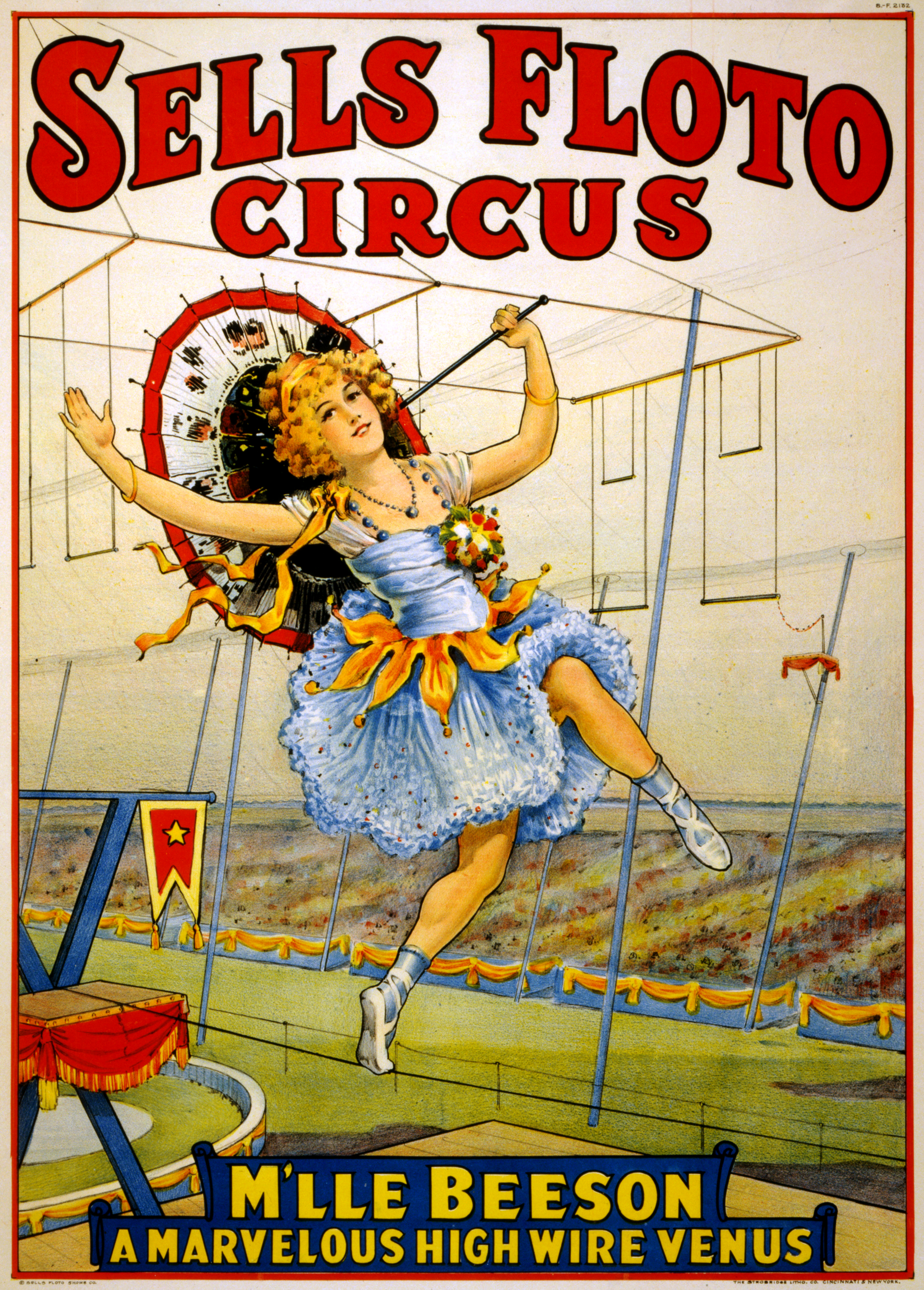 The poster advertises the act M’lle Beeson “A Marvellous High Wire Venus”