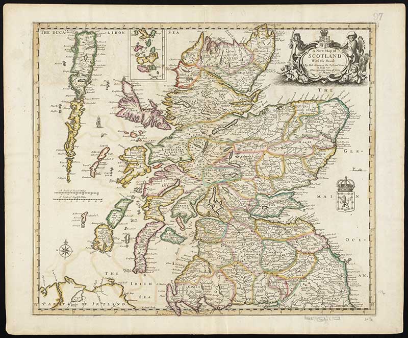 This map from 1707 is described as follows A new chart of the sea coast of Scotland with the Island thereof.