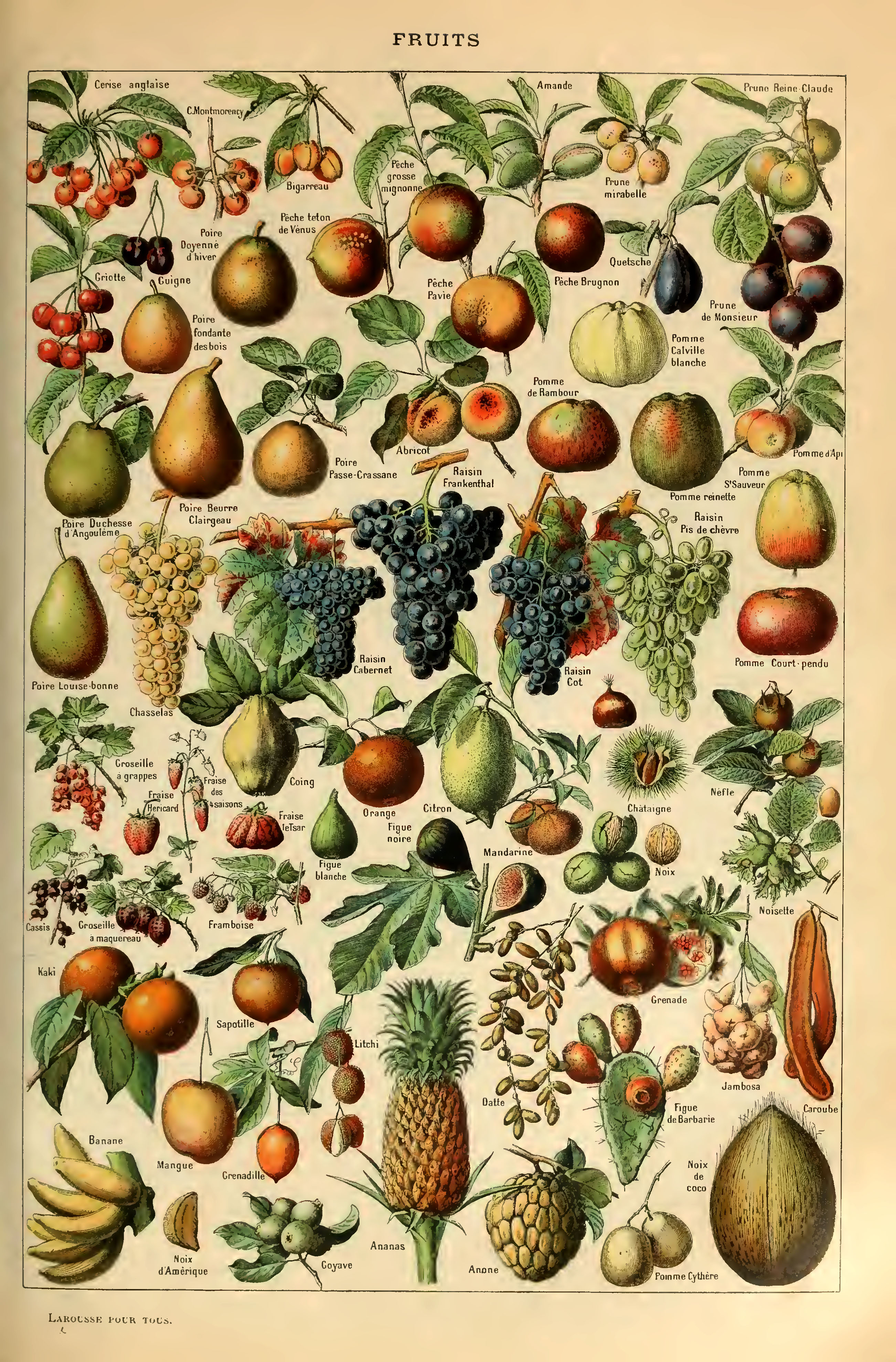 This vintage Adolphe Millot fruit poster appeared in Le Larousse pour tous, a more condensed version of the Larousse French illustrated dictionary.