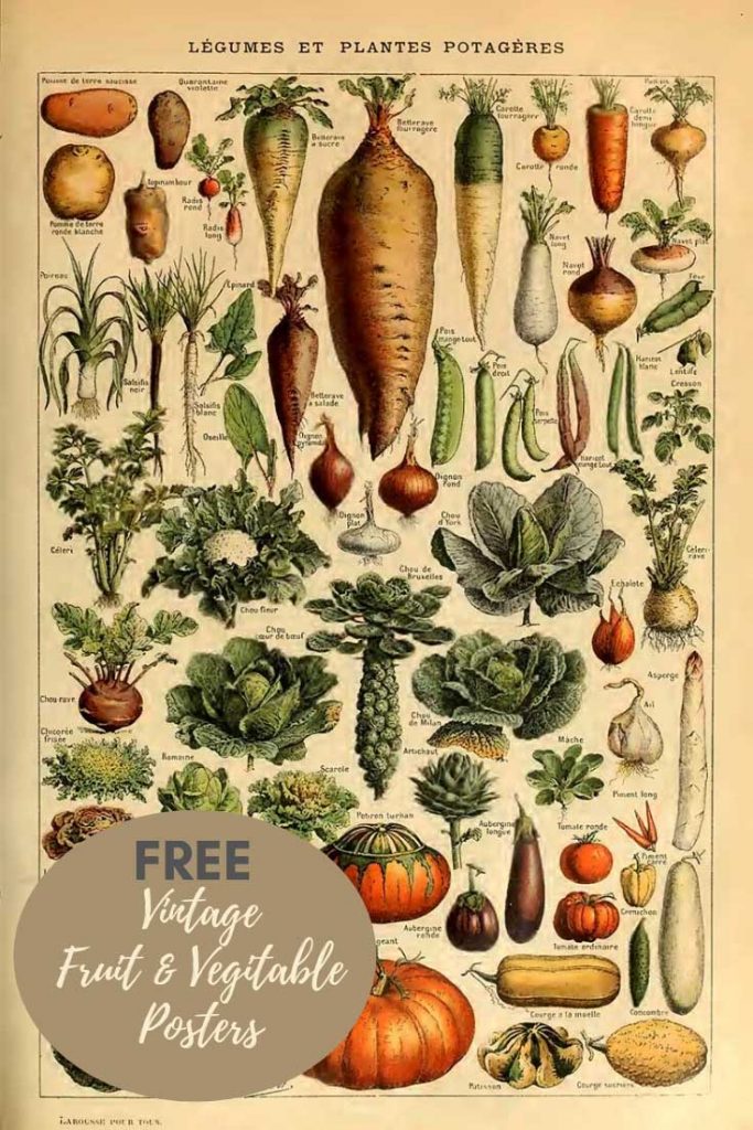 To download the vintage fruit and vegetable print you want, simply click on the title above the poster. A larger image will open in a new tab in your browser.