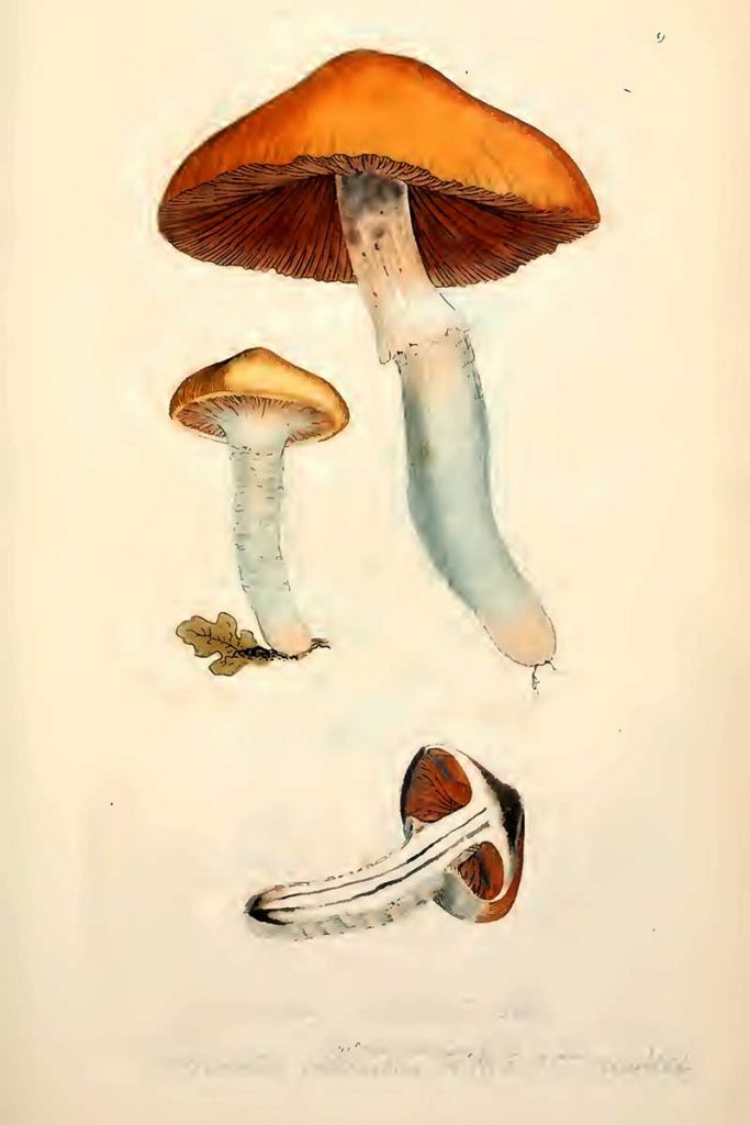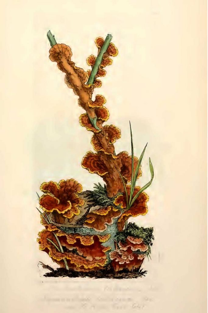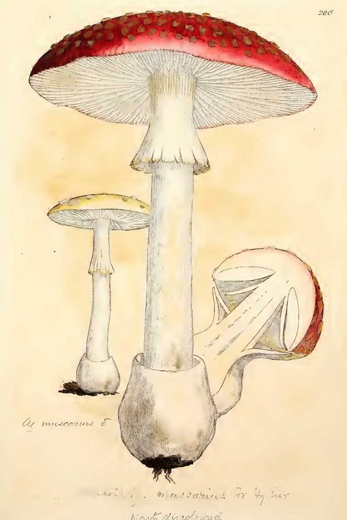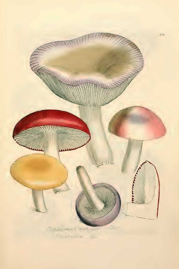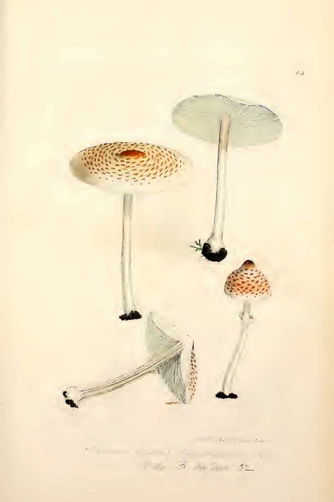 A curated collection of vintage fungi and mushroom drawings from the book “Coloured Figures of English Fungi or Mushrooms” by James Sowerby (1809).