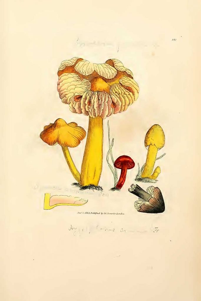 In Sowerby’s book, there are hundreds of illustrations of fungi and mushrooms. Here I show a small selection of the drawings that personally appealed to me.