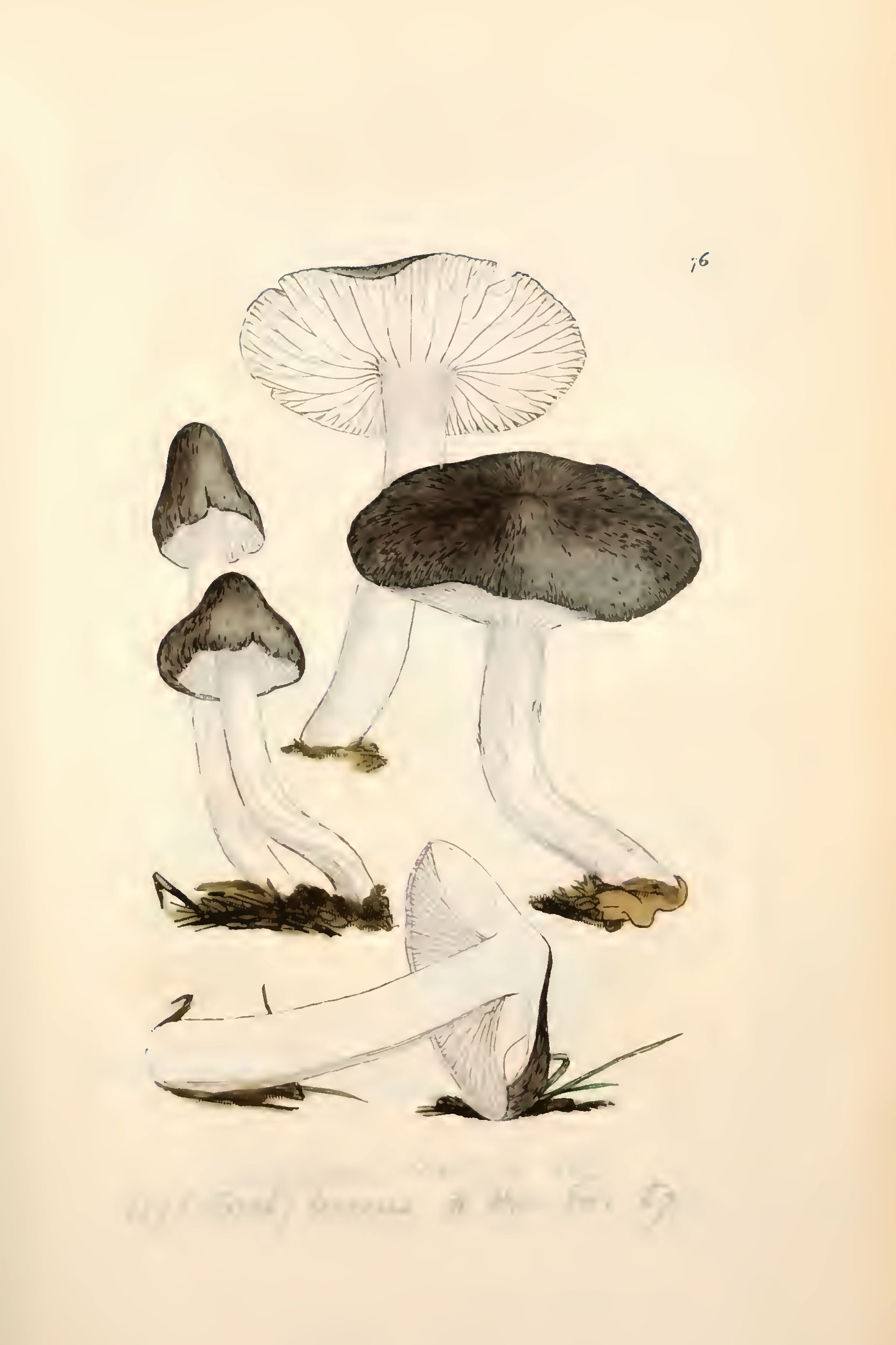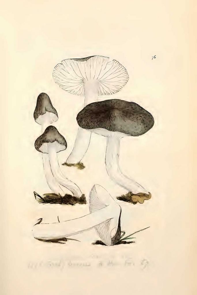 Grey cap mushroom drawings, commonly known as the grey knight. It is considered edible and sold in the markets of France.
