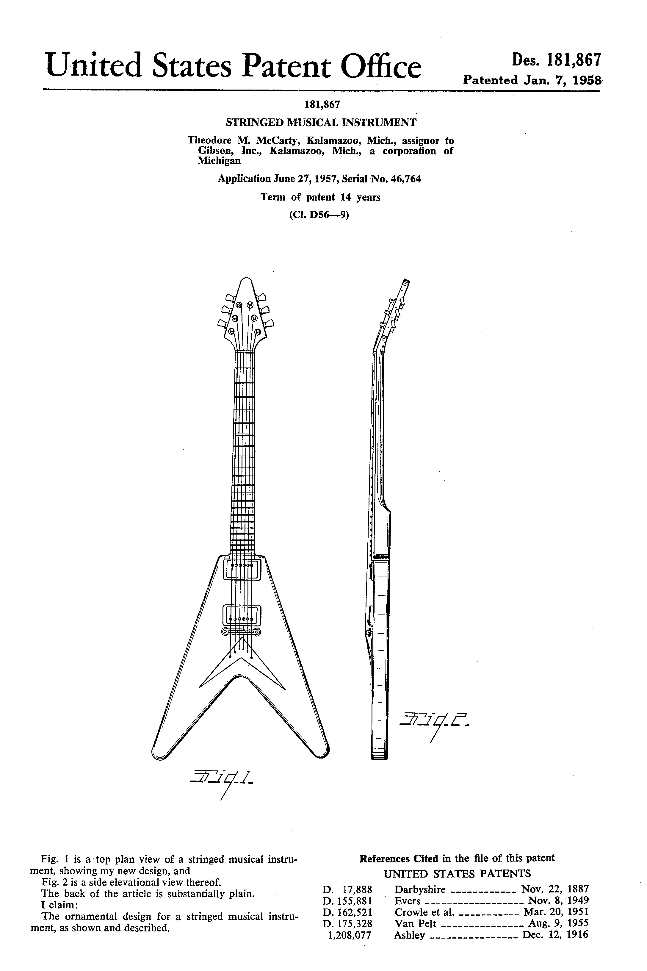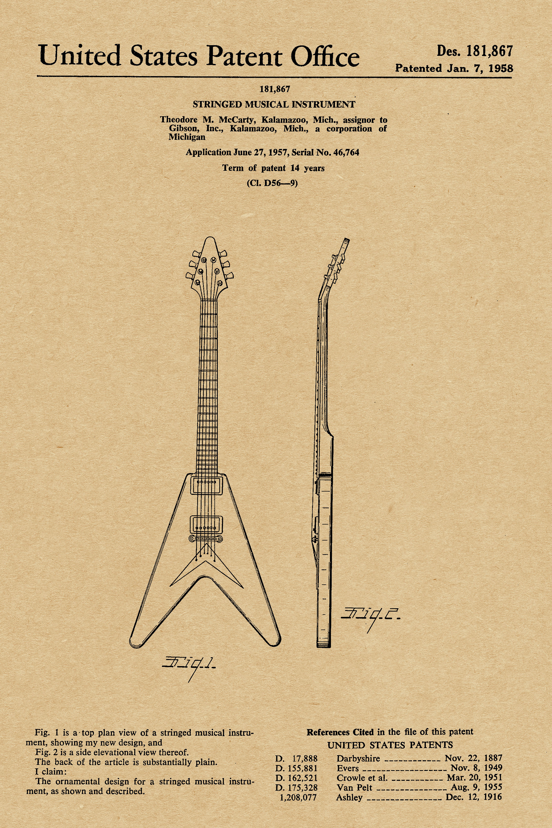 - 1958 Gibson Flying V Guitar Patent Print