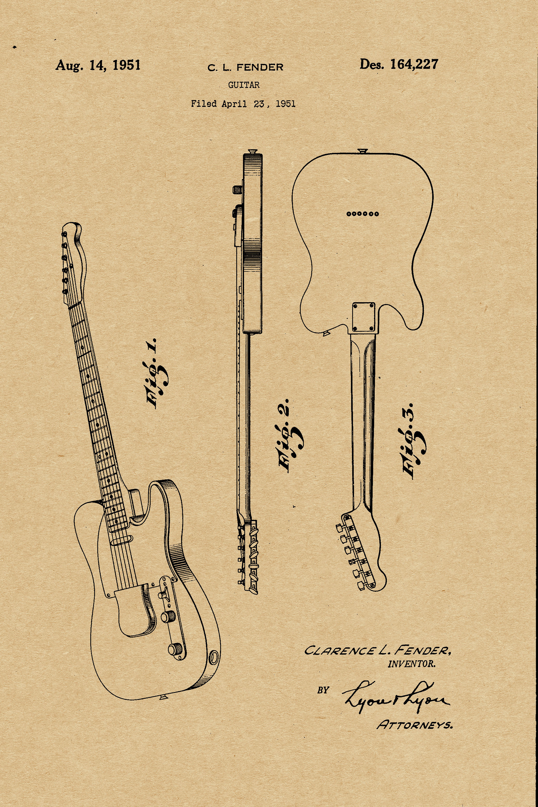 - 1956 Fender Guitar Paten Print