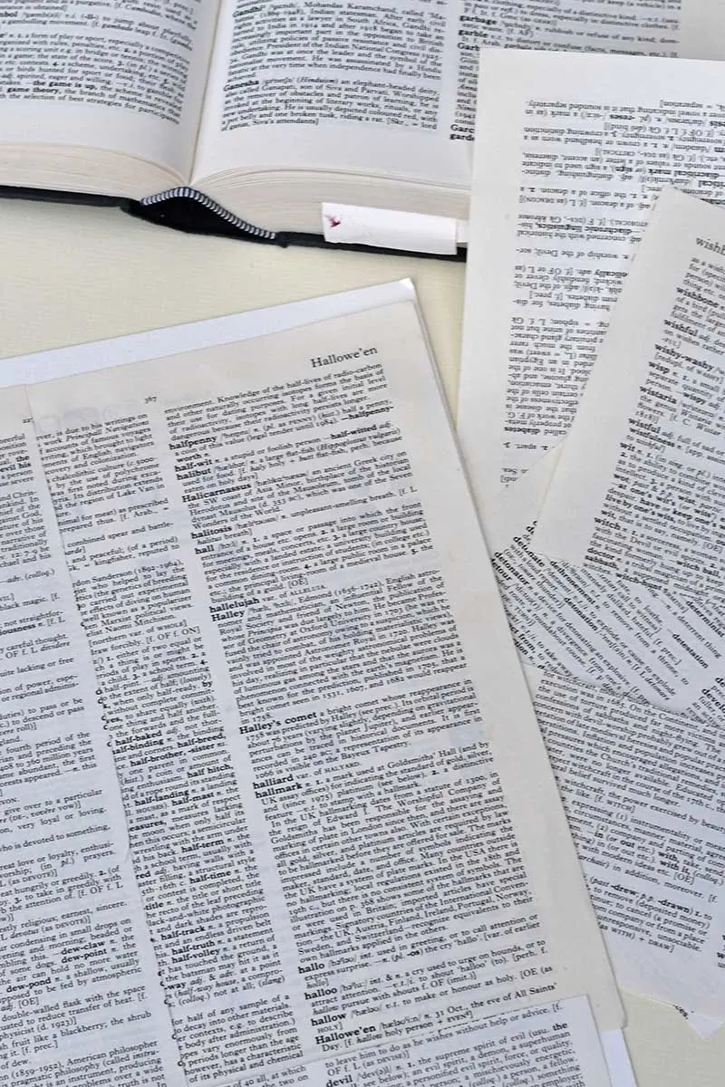 - Pages from an old dictionary (preferably with words like “Halloween,” “witch,” and “devil”)