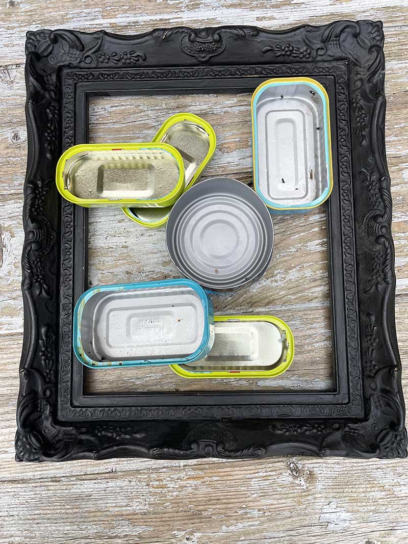 Step 1: Pick Your Tin Cans: First, play around with different combinations and patterns of tin cans in your frame. This will help you decide which combination to use for this craft.