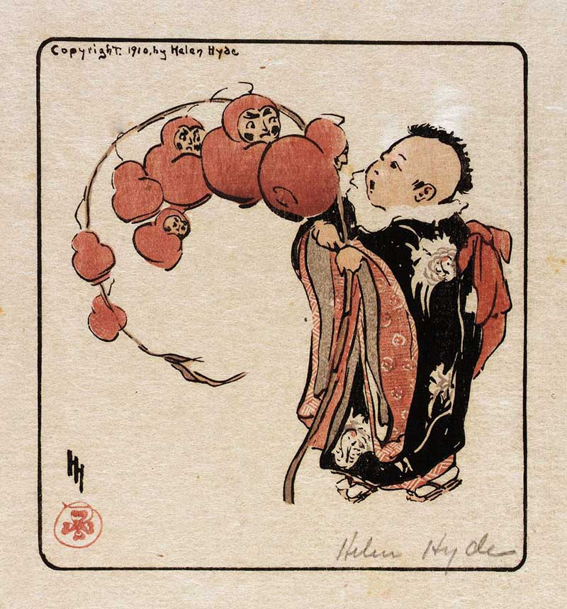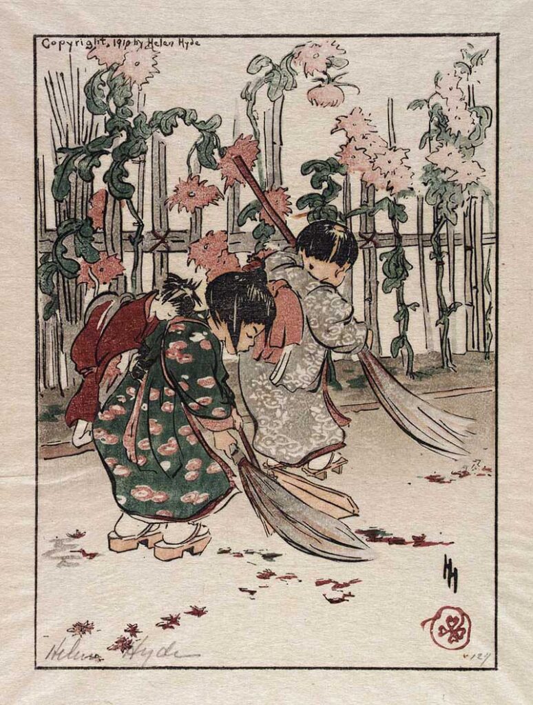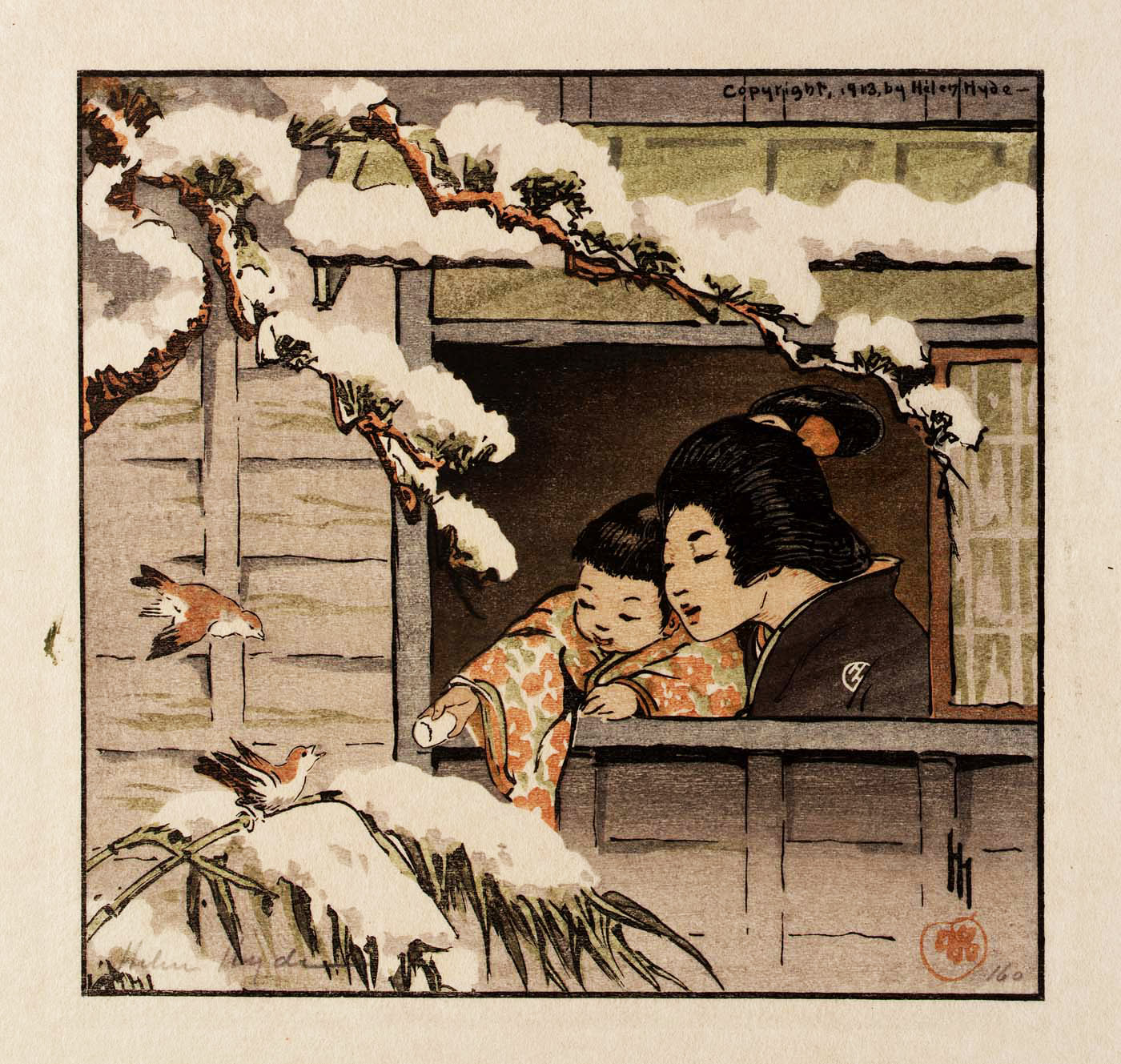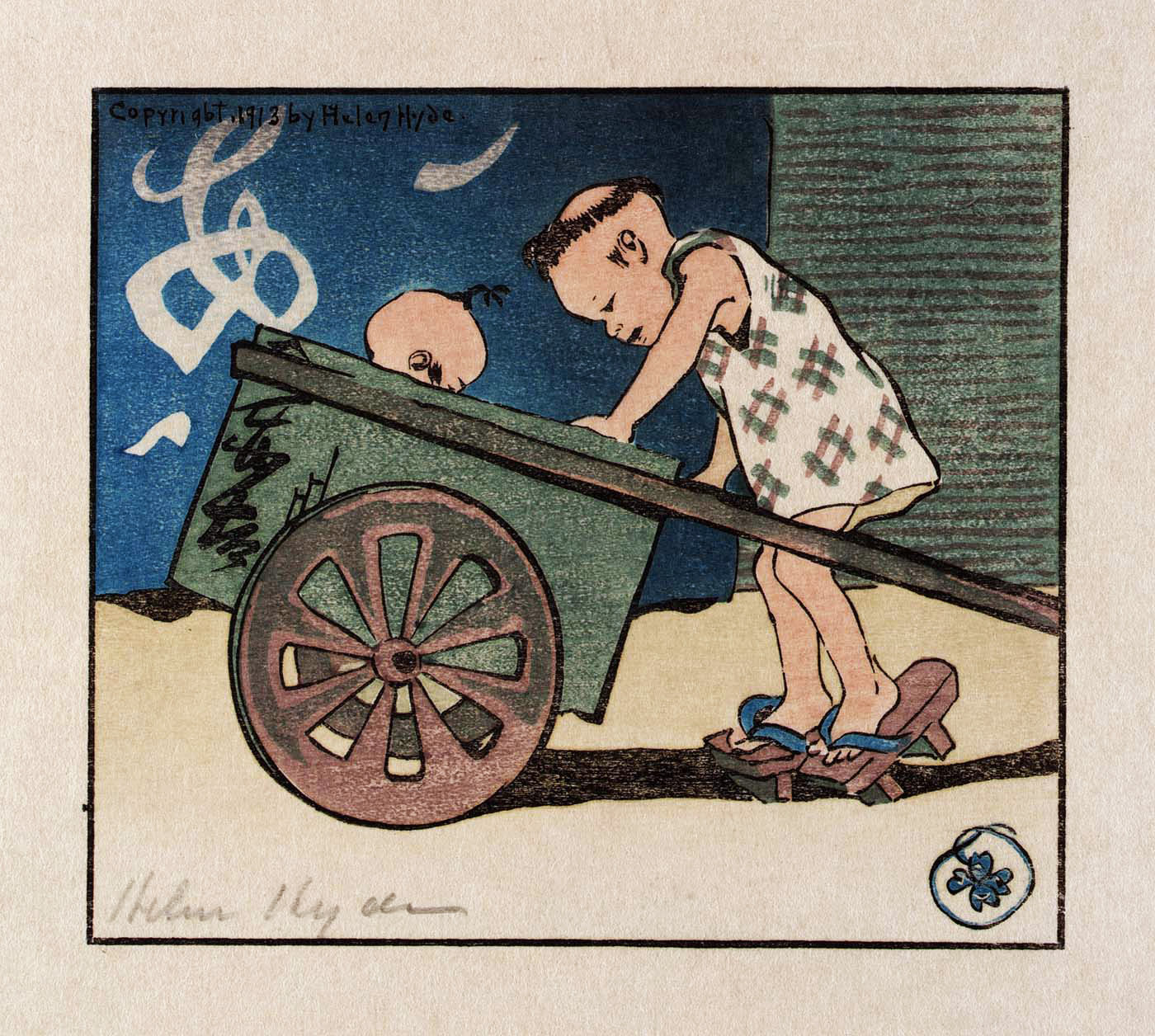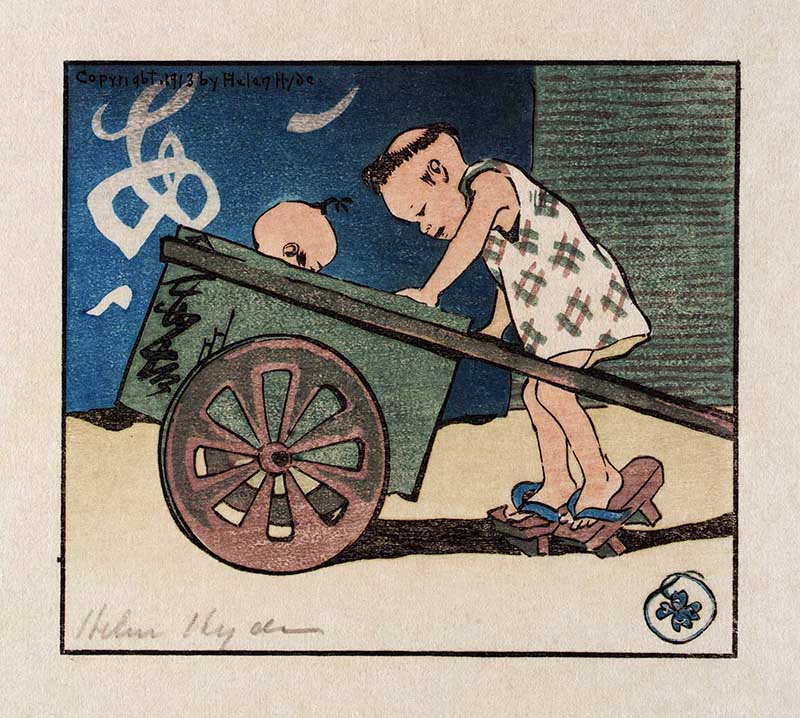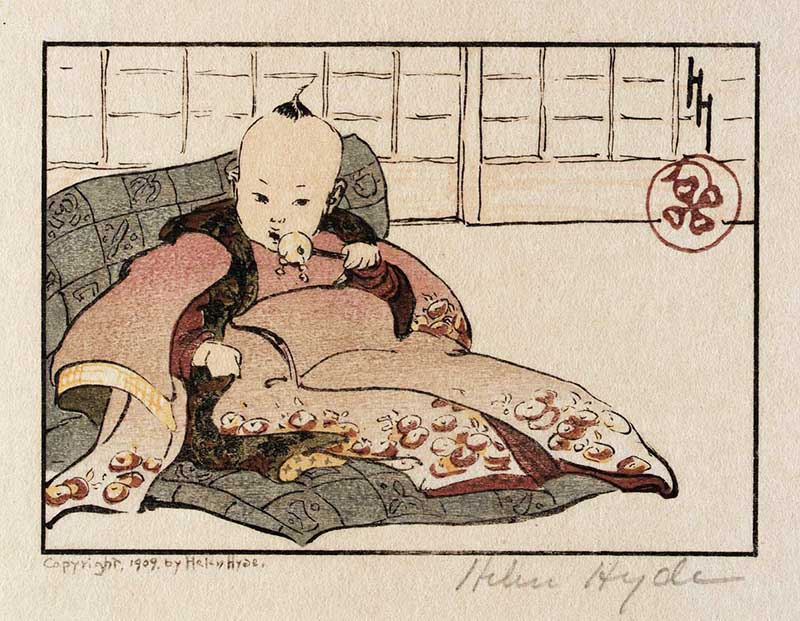 Helen Hyde lived and worked in Japan between 1903-1913 where she learned the Japanese print woodblock techniques. The majority of her artistic work reflected Japanese landscapes and local women and children in domestic settings.