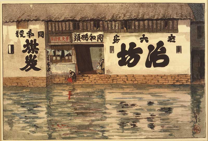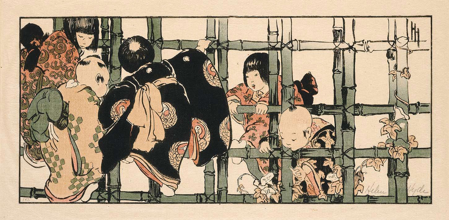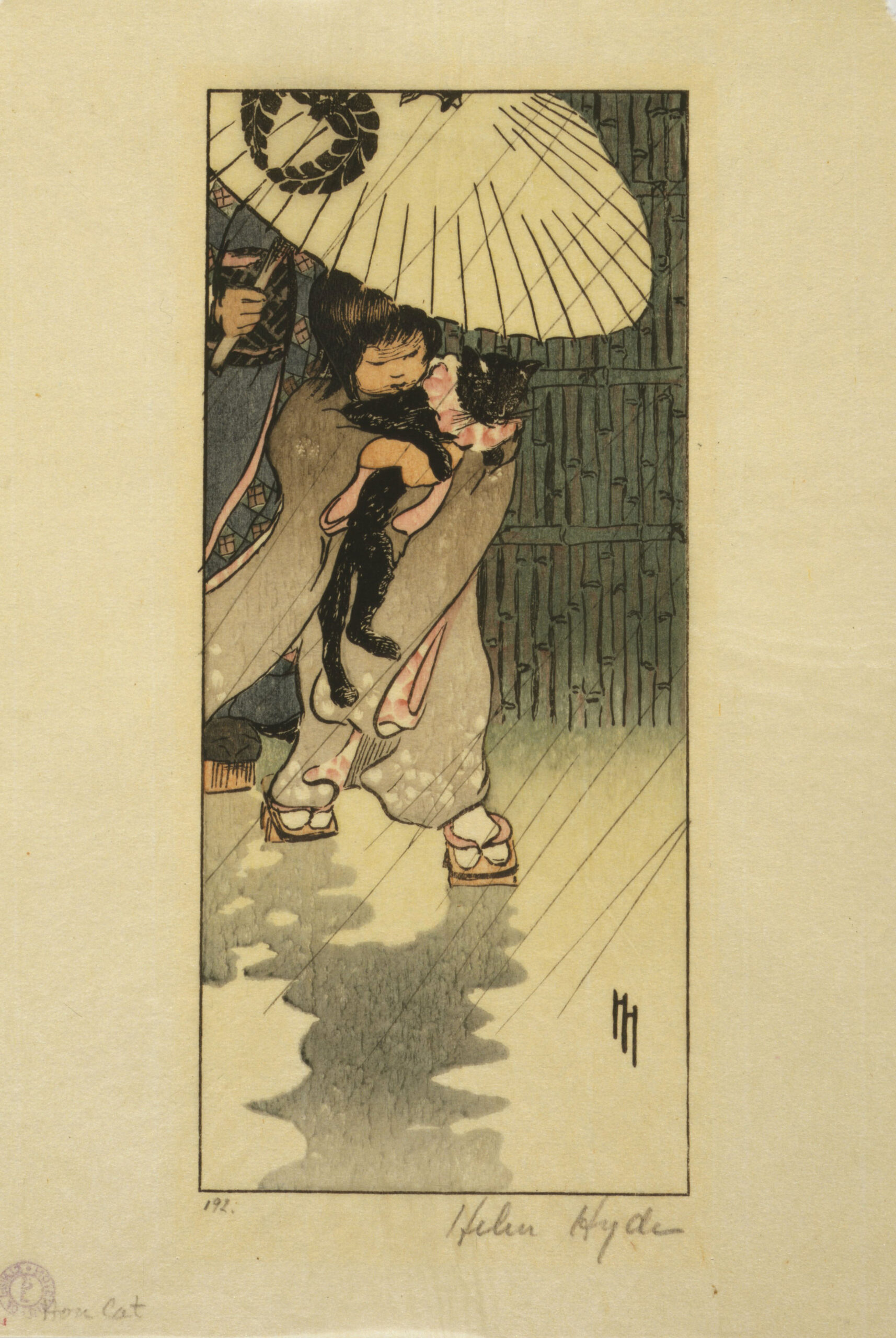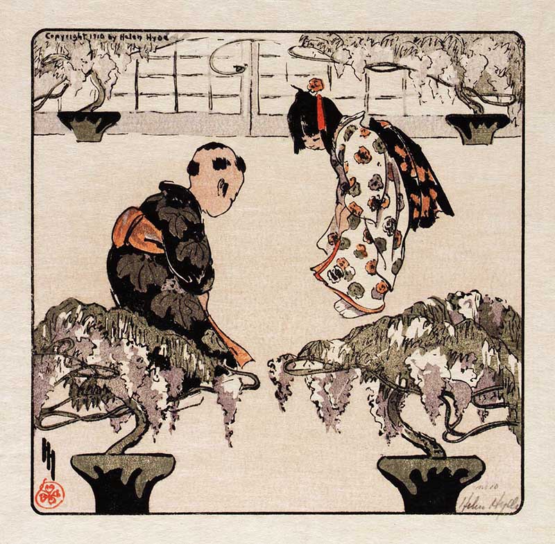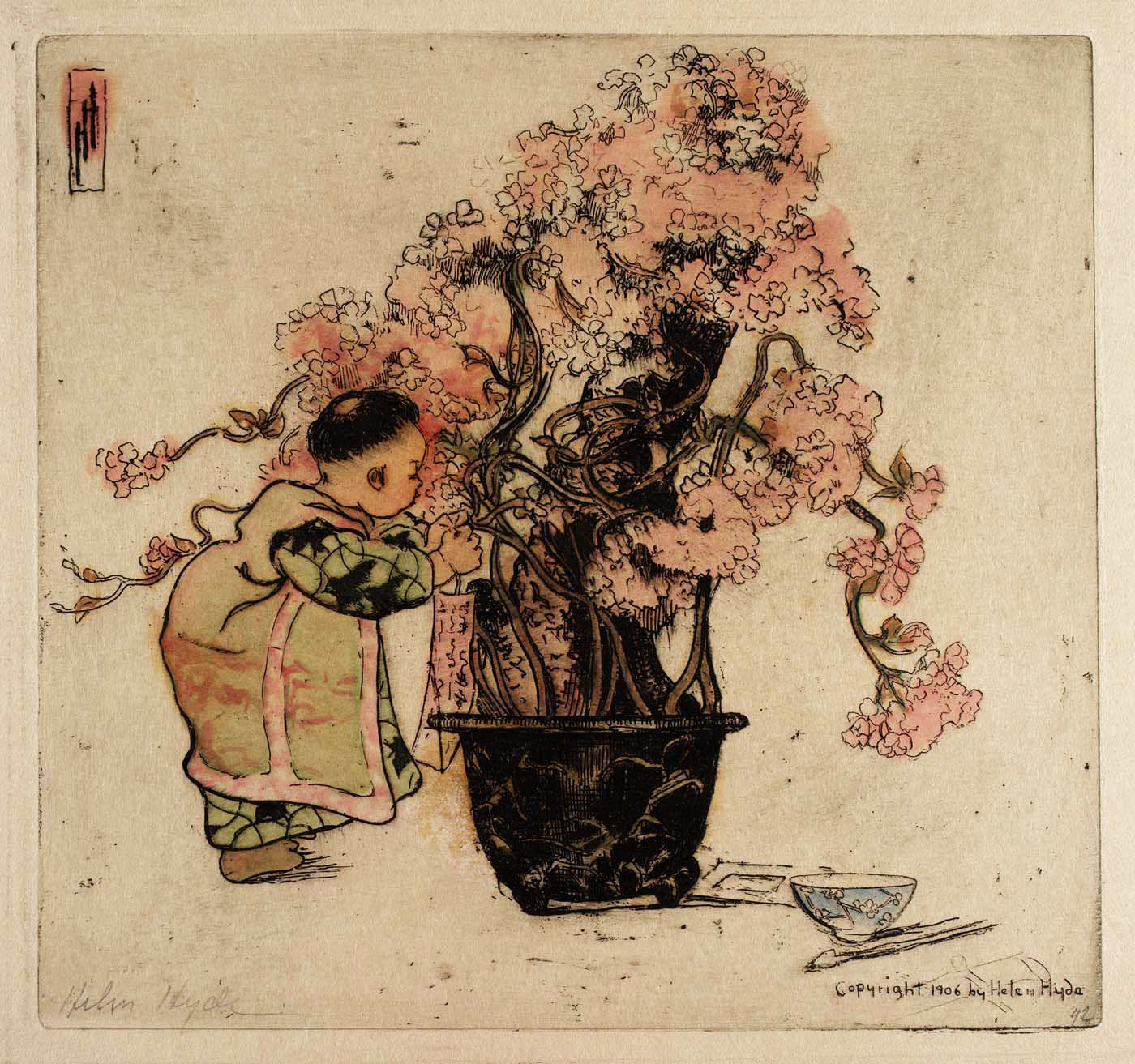 Helen Hyde lived and worked in Japan between 1903-1913 where she learned the Japanese print woodblock techniques. The majority of her artistic work reflected Japanese landscapes and local women and children in domestic settings.