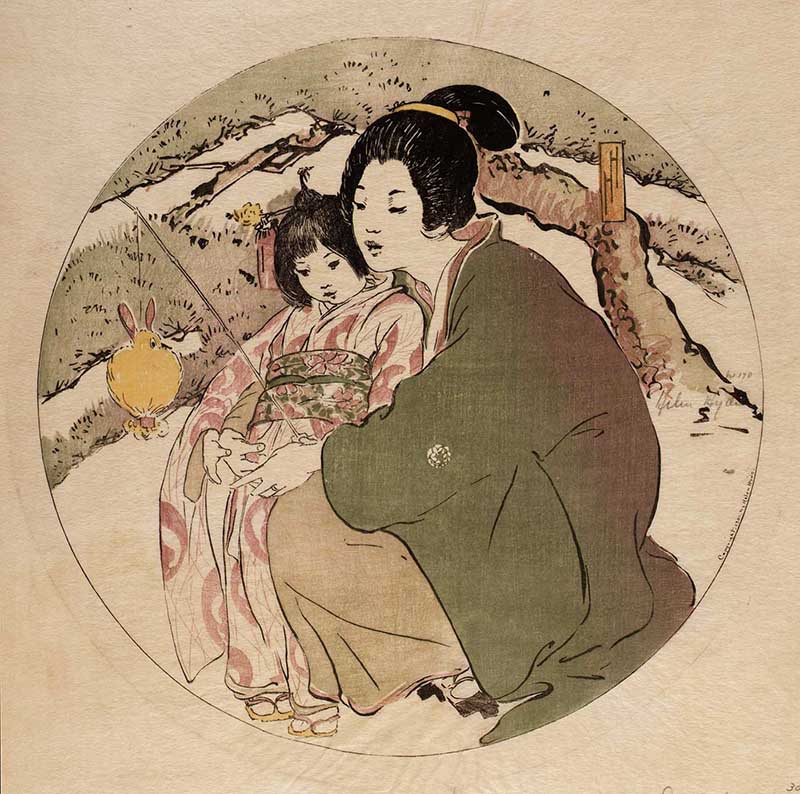 The mother and child together is a very consistent theme in Helen’s Japanese woodblock prints.