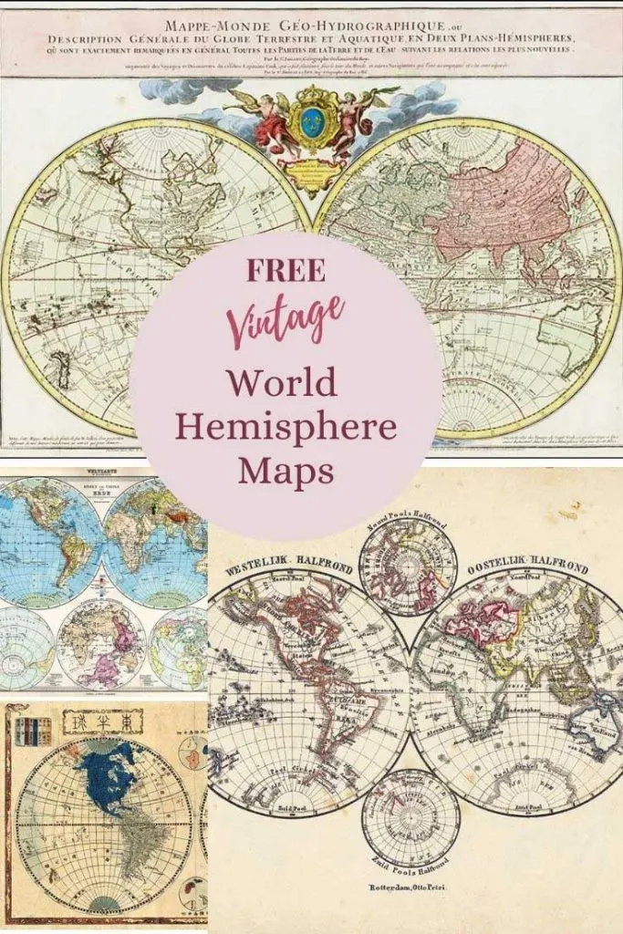 Aesthetically I really love the representation of the world in these two globes that is why I have curated this collection of the best antique hemisphere world maps that are free to print and download.