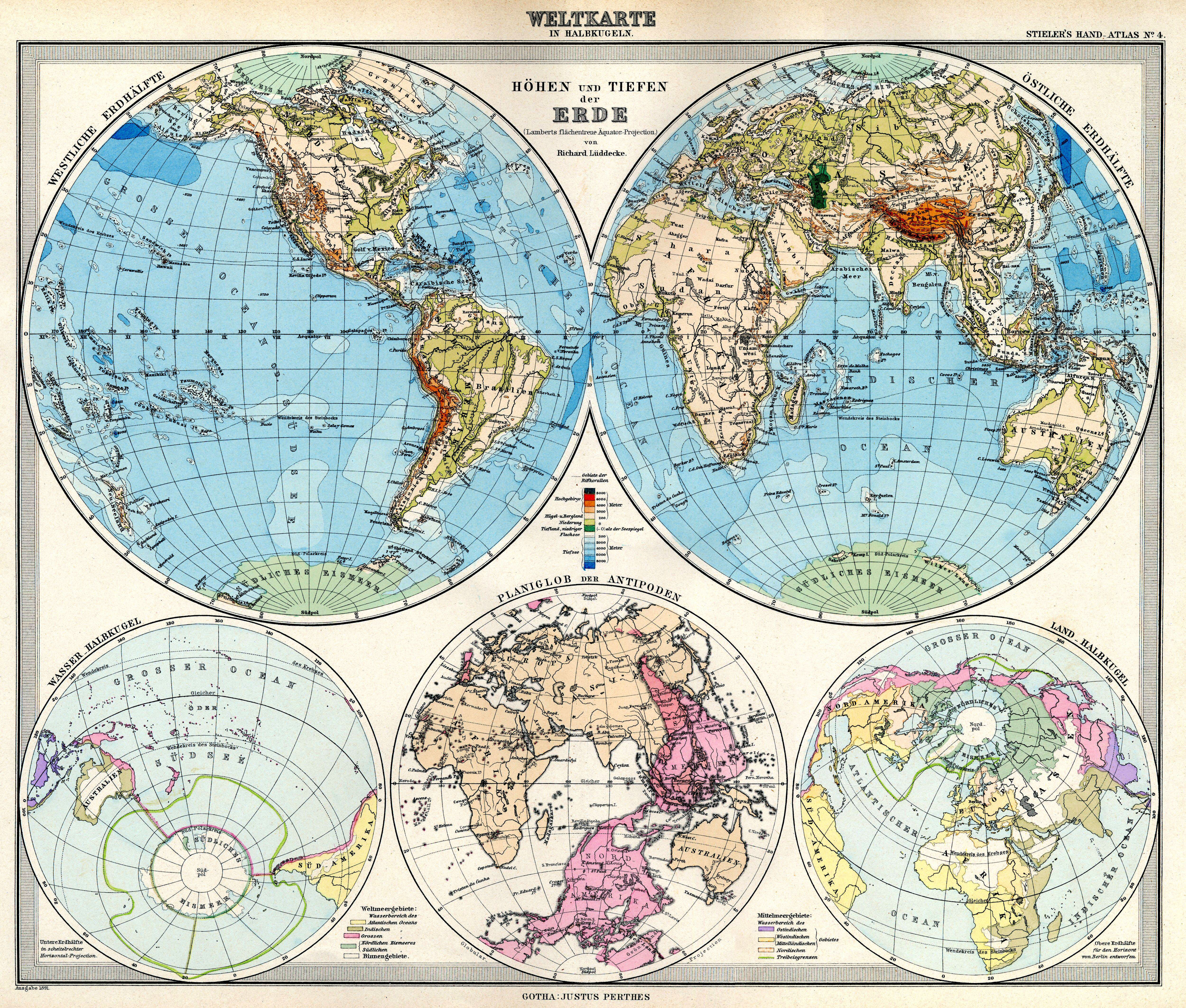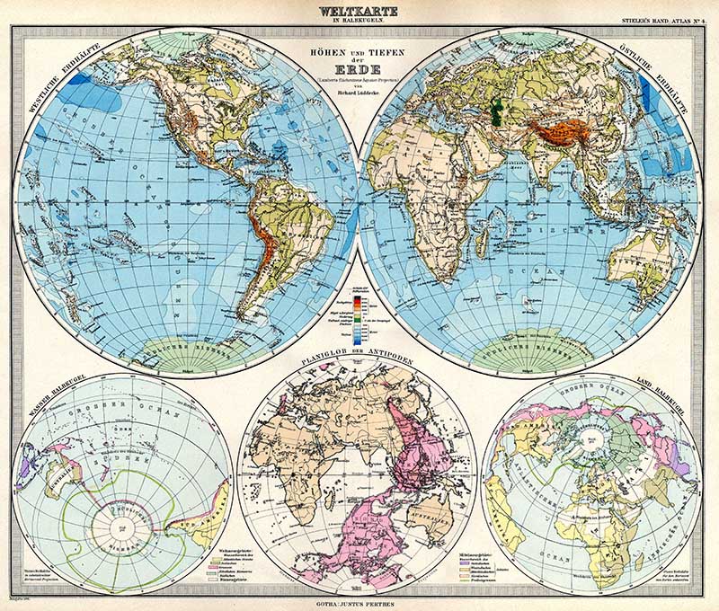 Another Dutch old hemisphere map of the world. This one from Adolf Stieler’s Handatlas 1891.