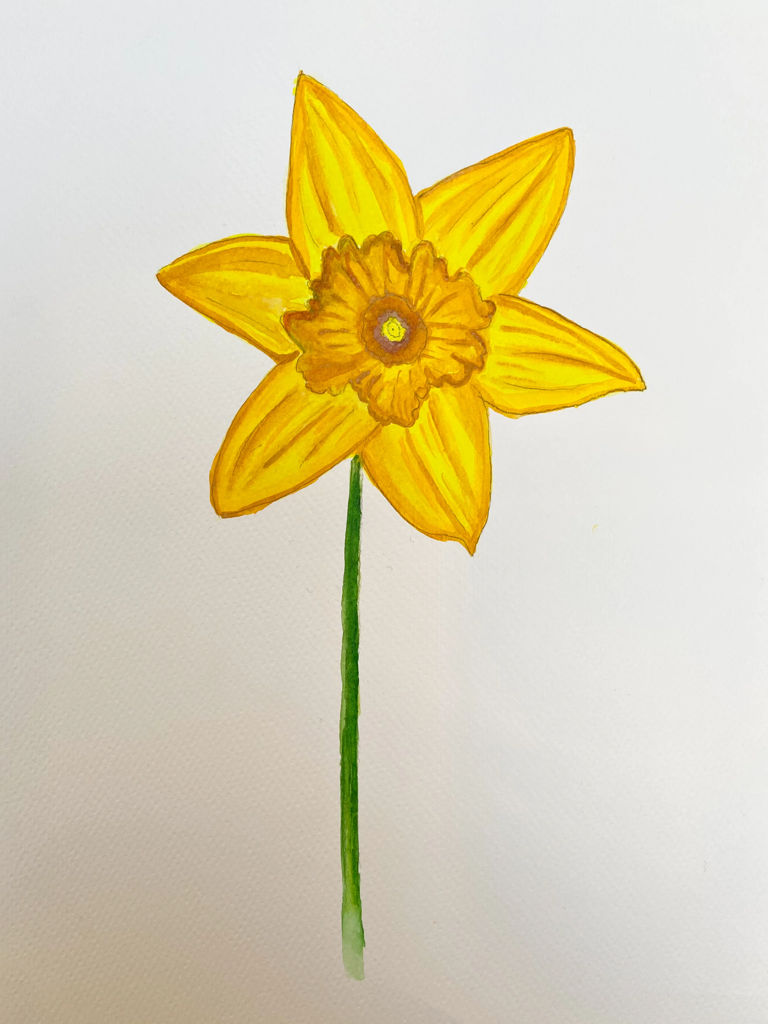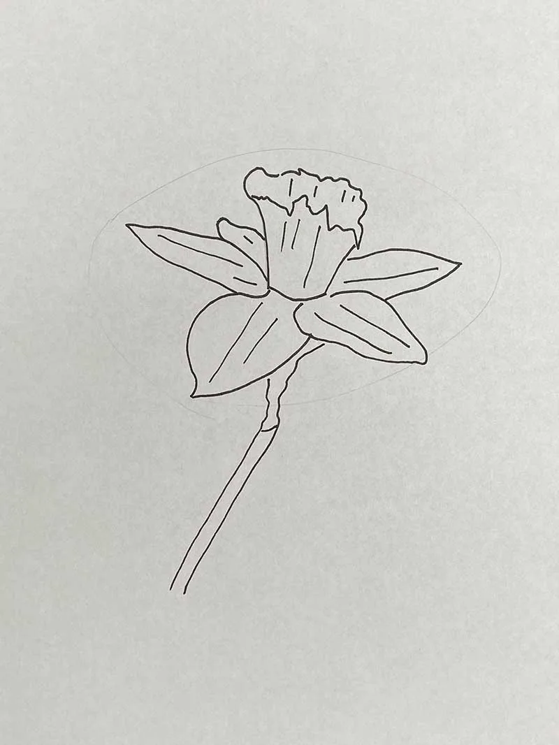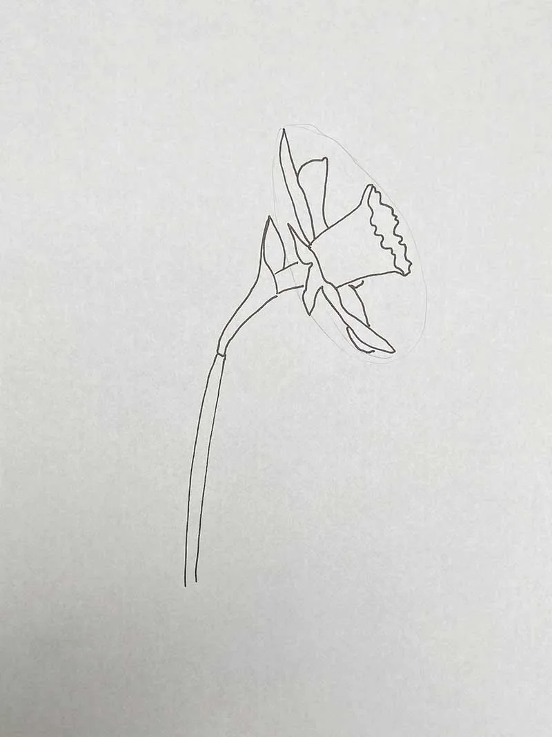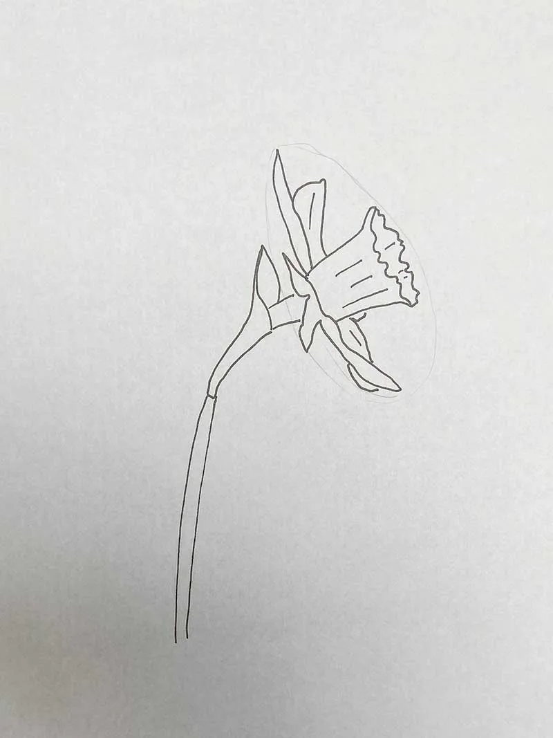Drawing a Daffodil front is quite a tricky perspective, so it’s easier to draw a side view or at an angle like here.