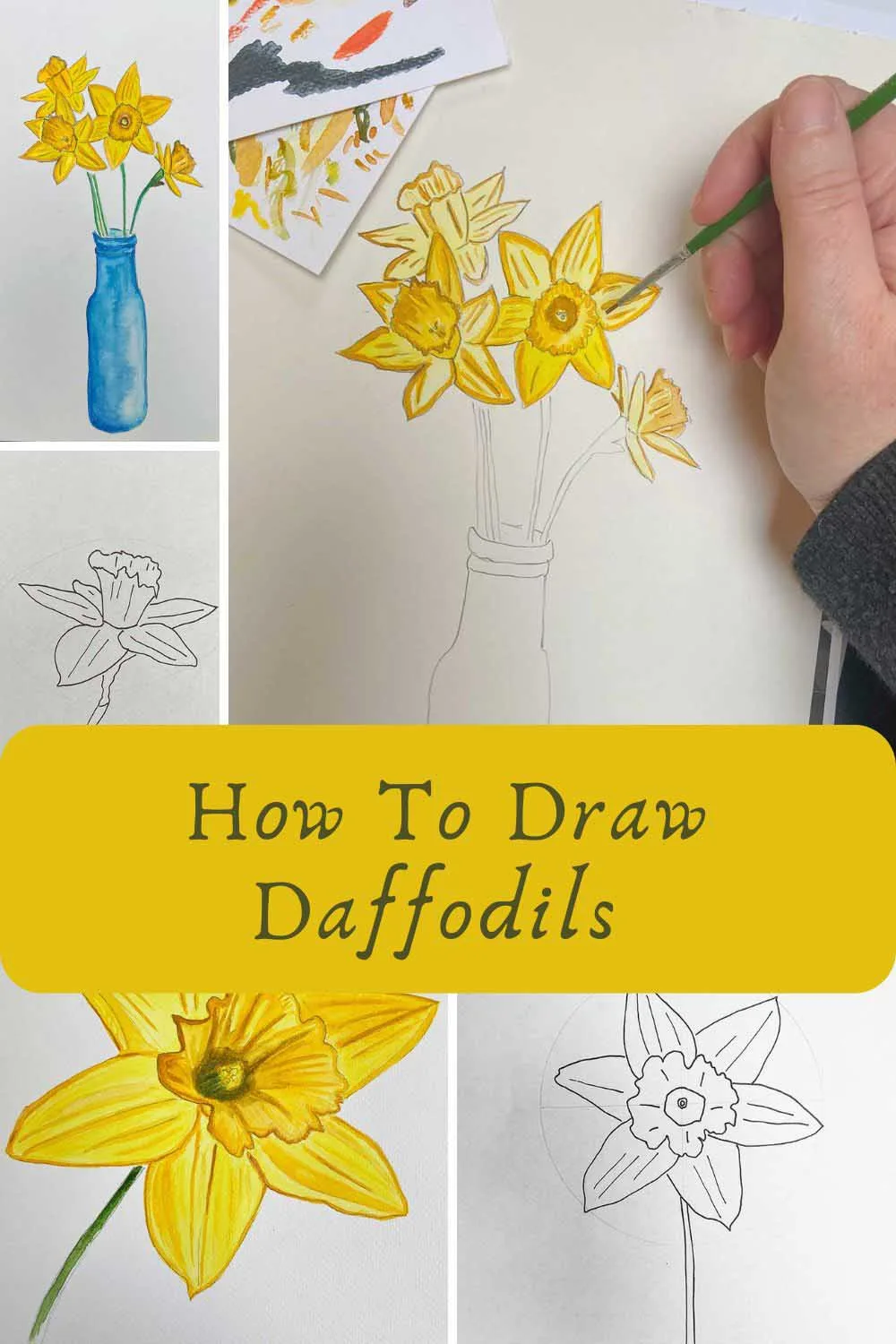 Here is my tutorial on drawing Daffodil flowers from different perspectives, finishing up with a bunch in a vase. Whether you’ve got fresh daffodils in front of you or you’re browsing through old prints for inspiration, let’s have fun drawing them together!