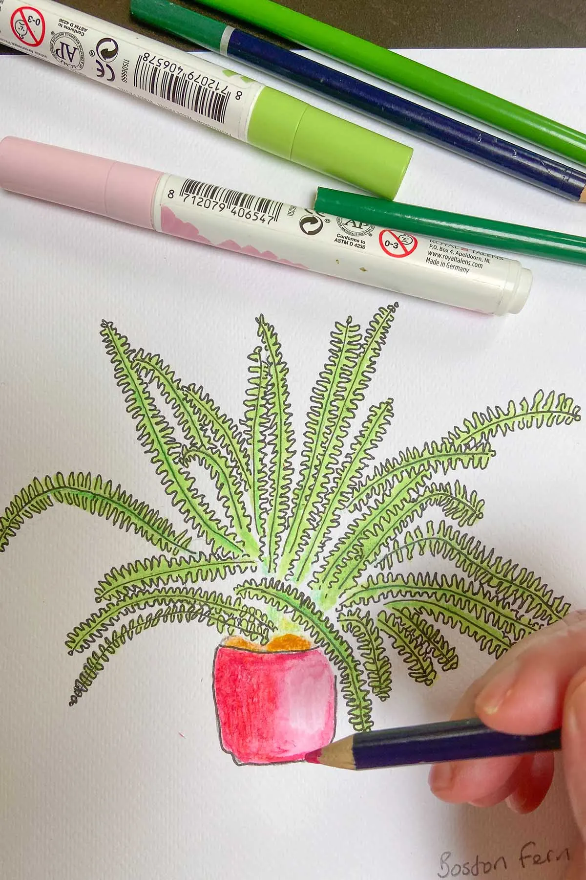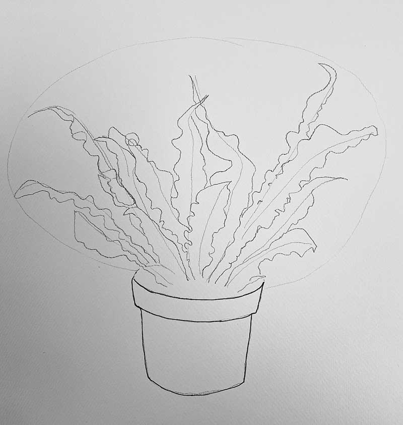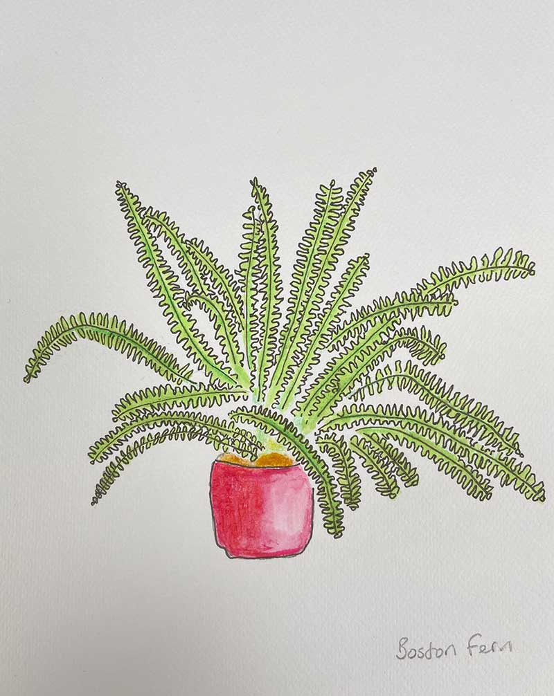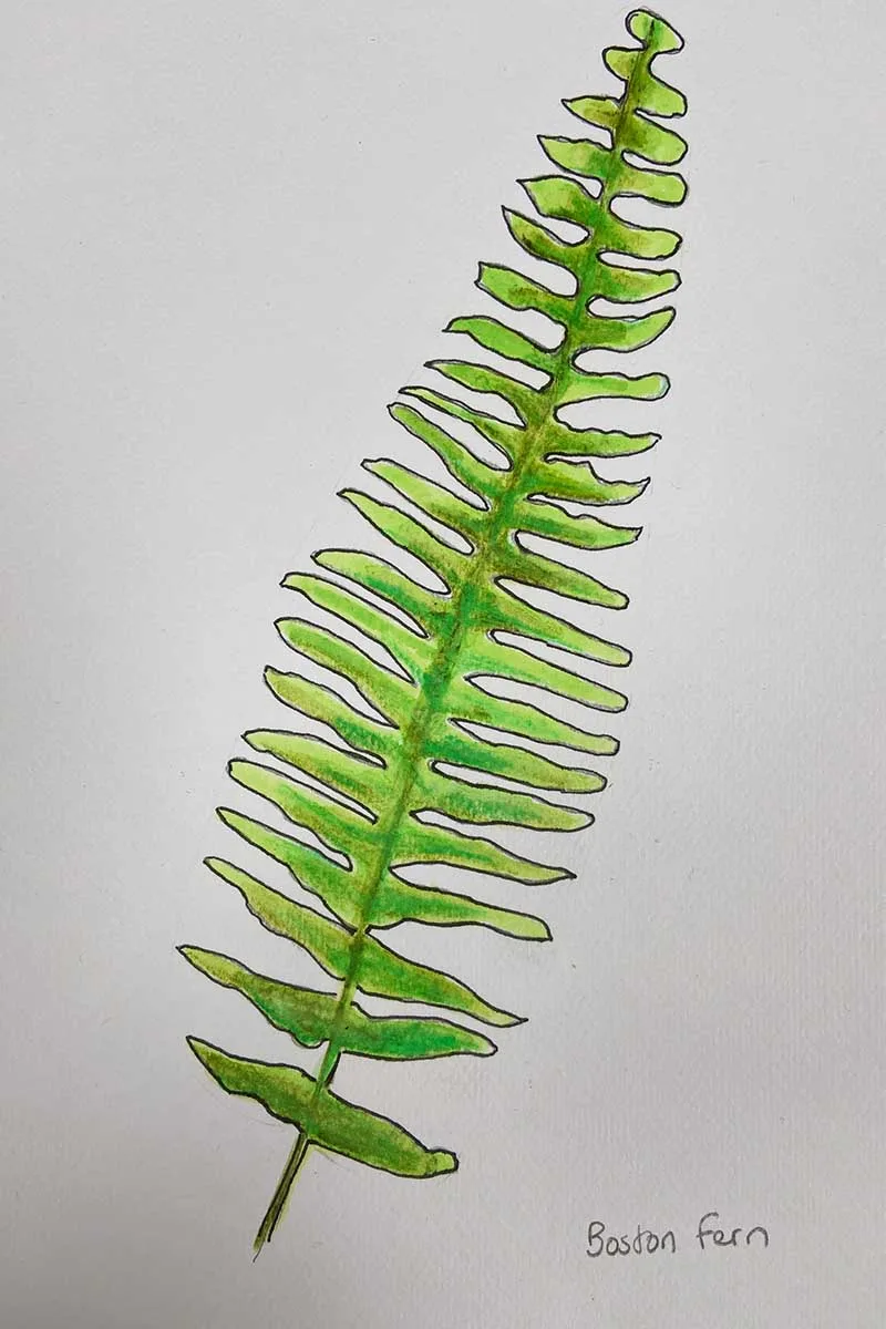 The cascading fronds of a Boston fern make it a lovely subject to draw