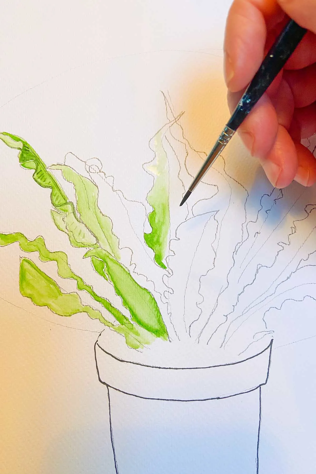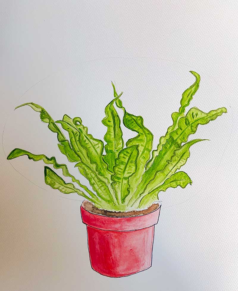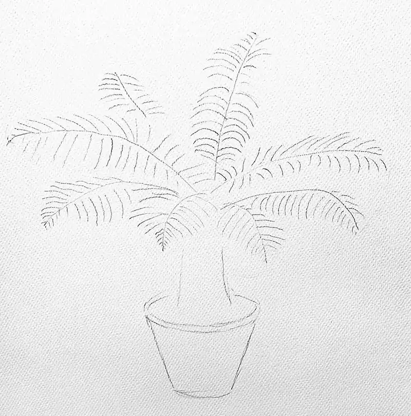 The cascading fronds of a Boston fern make it a lovely subject to draw