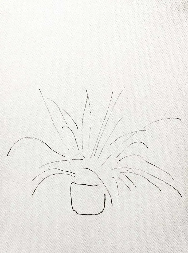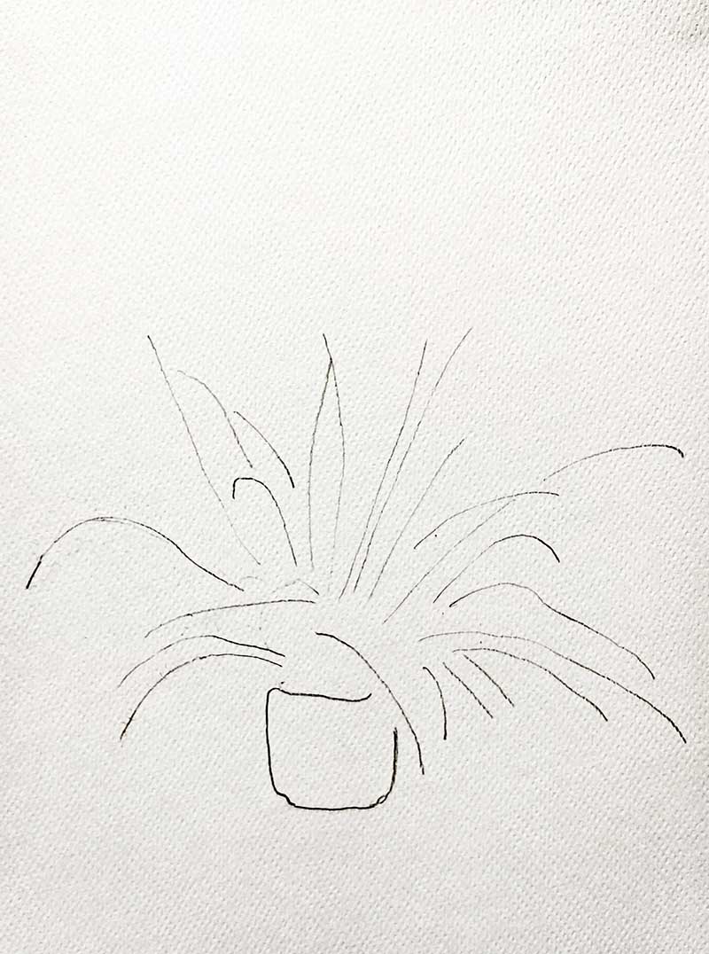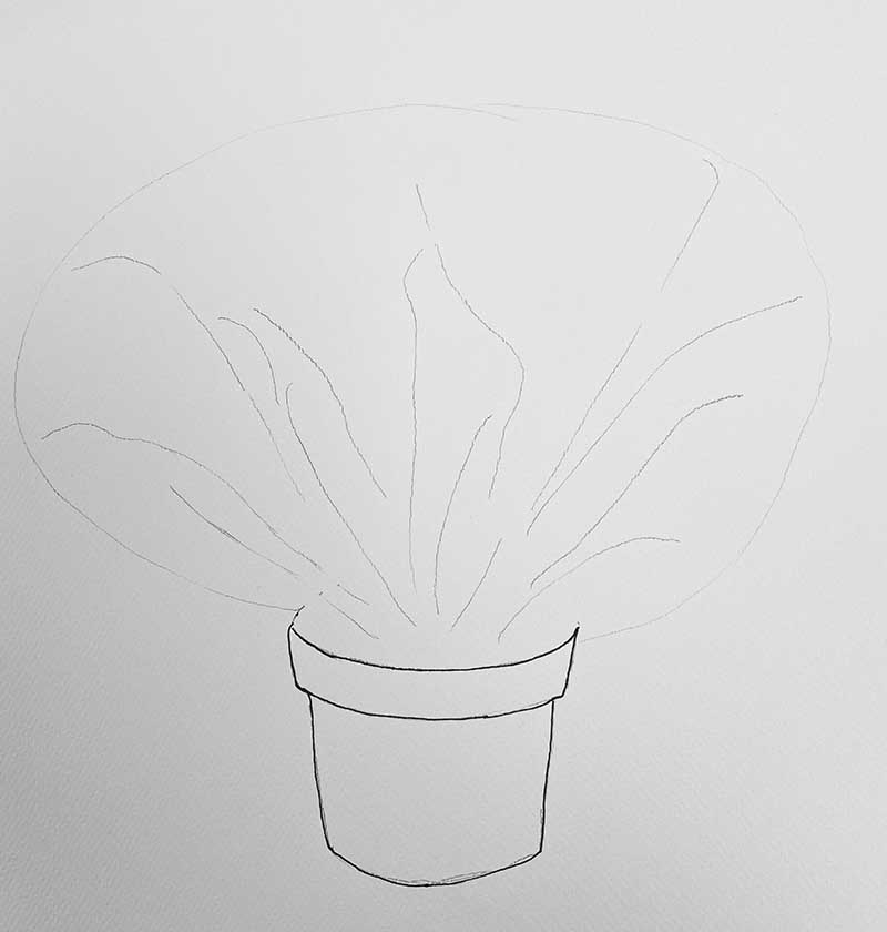 Step 1: Sketch your pot with lines for the stems emanating from the centre in a haphazard and cascading manner.