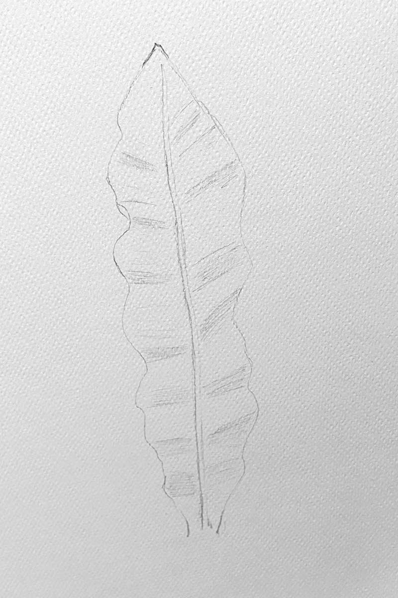 Step 1: Start by outlining the shape of the frond in pencil. This is a long, narrow shape similar to a sword.