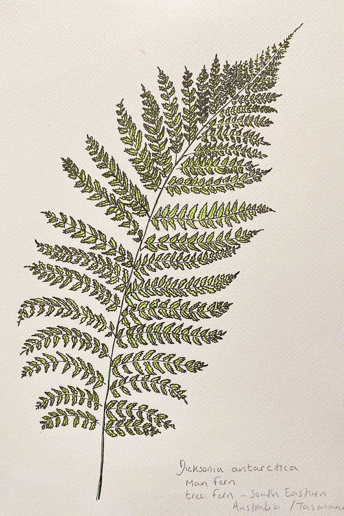 These shade gardens were a lush sanctuary filled with the majestic Dicksonia Antarctica or fern trees, transporting me to a prehistoric world. Inspired by this encounter, I felt a renewed urge to bring the beauty of ferns to life on paper.