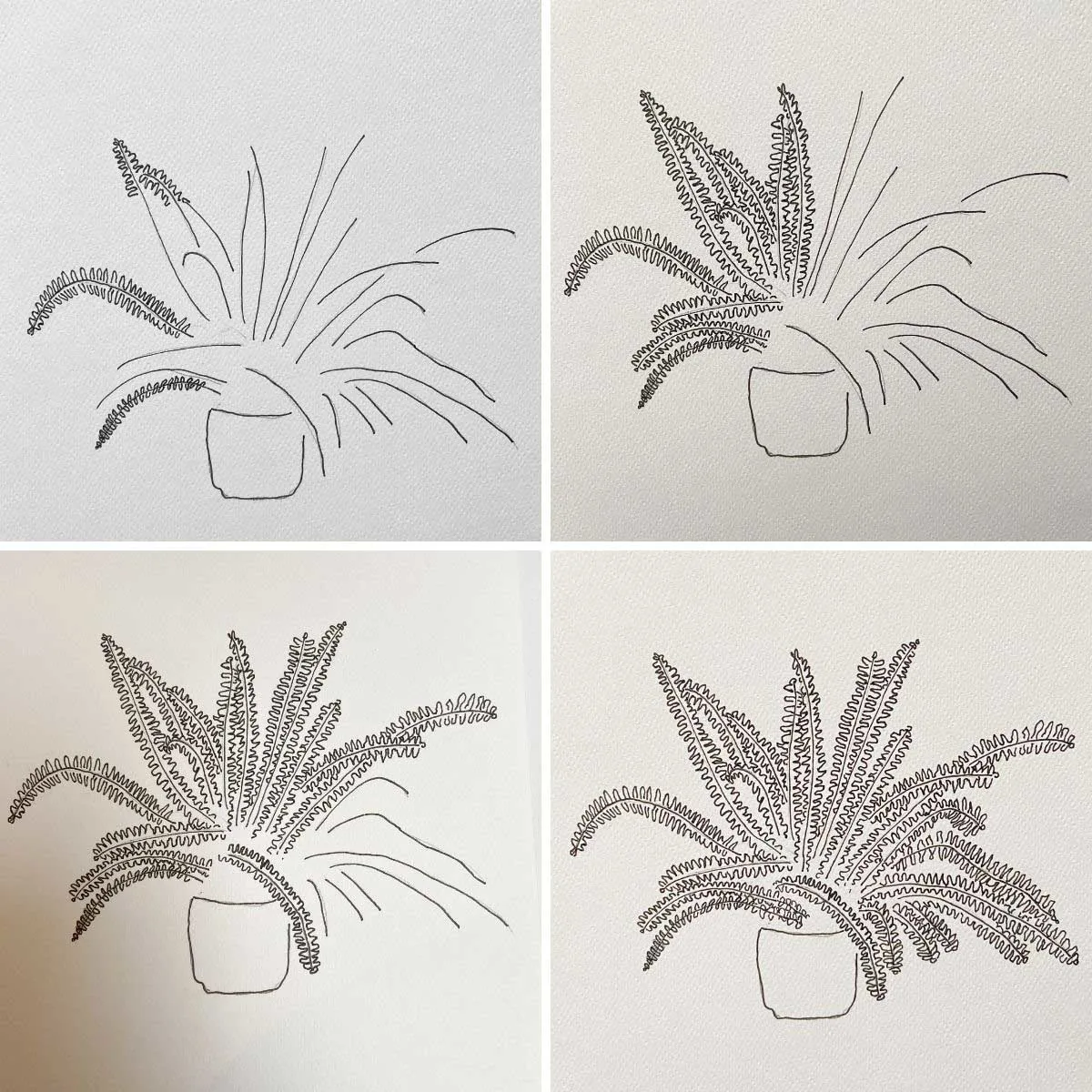 Sep 4: This is the fun bit. If you are drawing a divided fern with complex details, put on some music and relax. This part is time-consuming but rewarding. I found it quite therapeutic to build it up step by step.