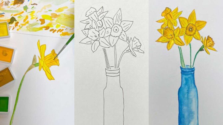 Learn how to draw a daffodil flower from many angles and then how to sketch a whole vase of them.