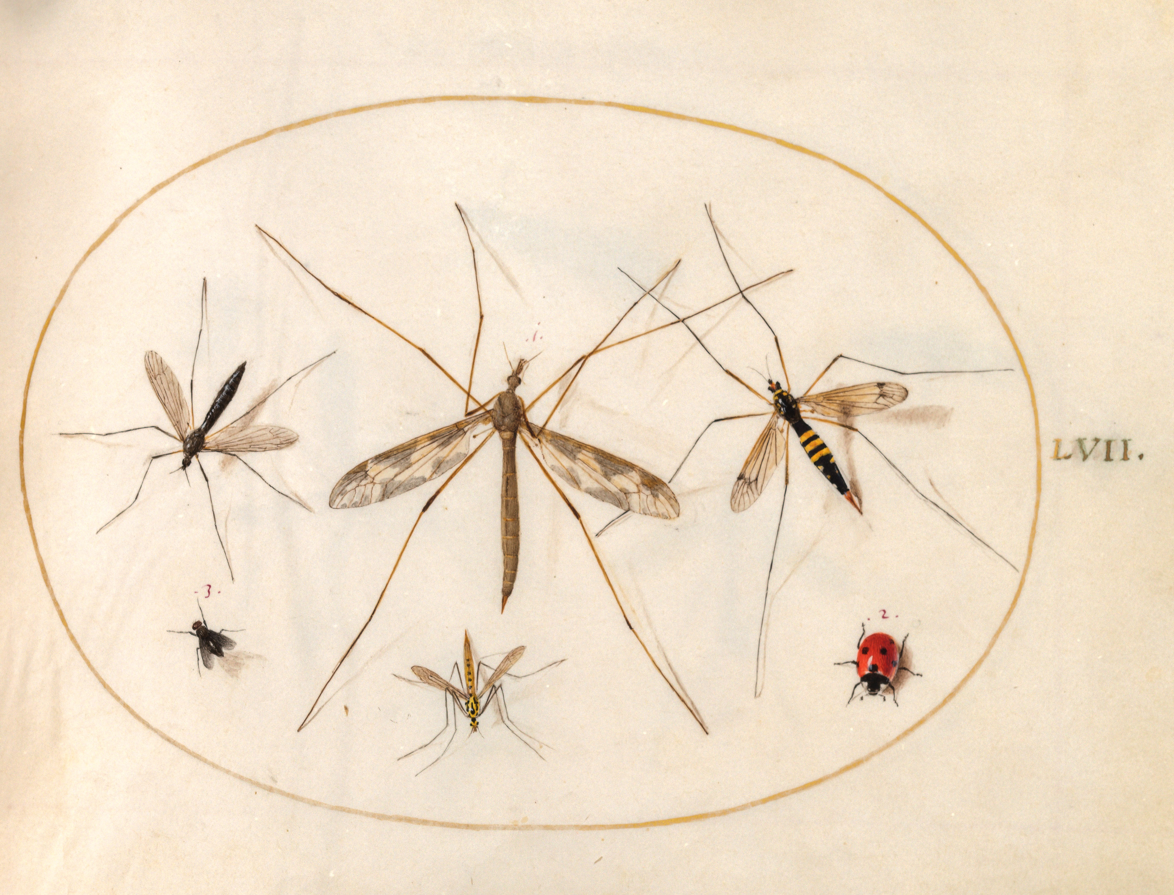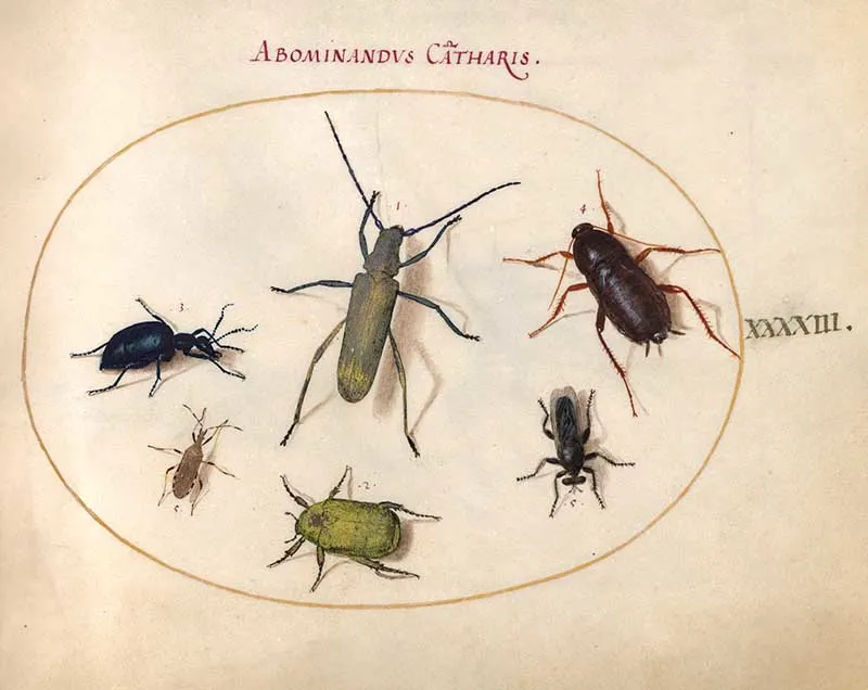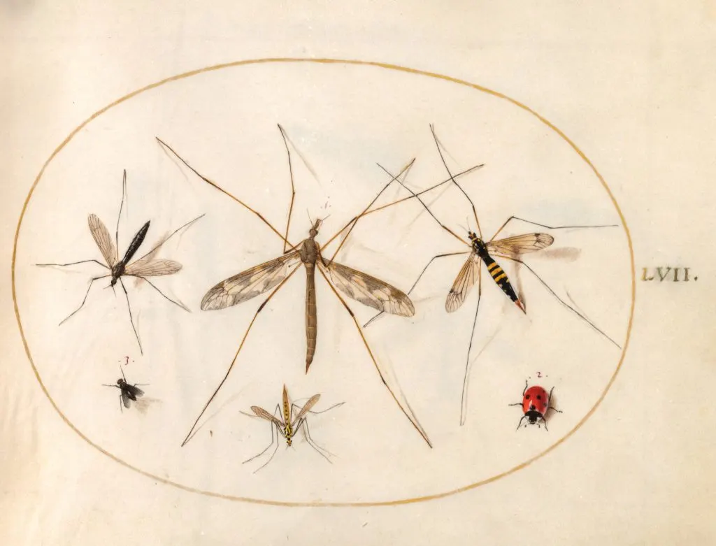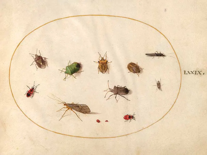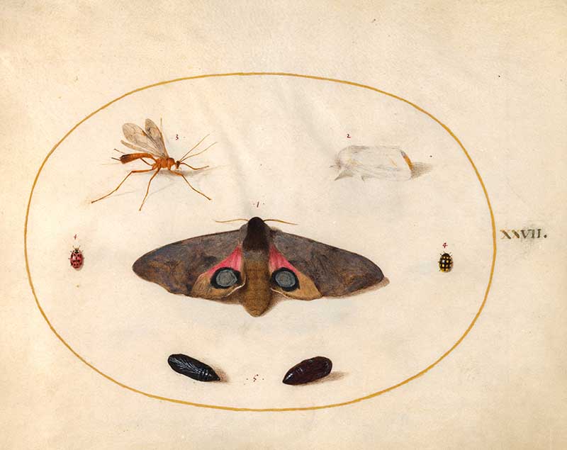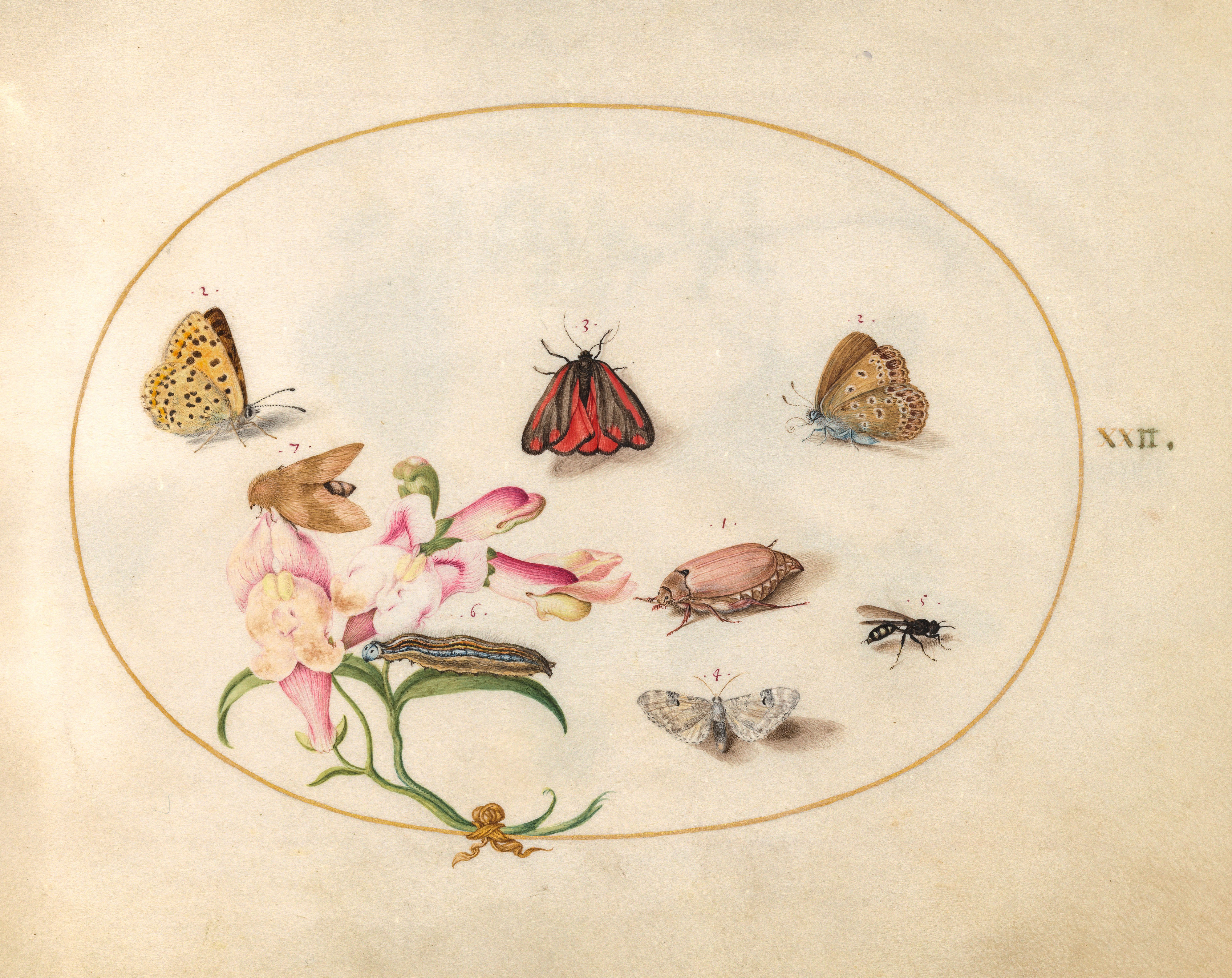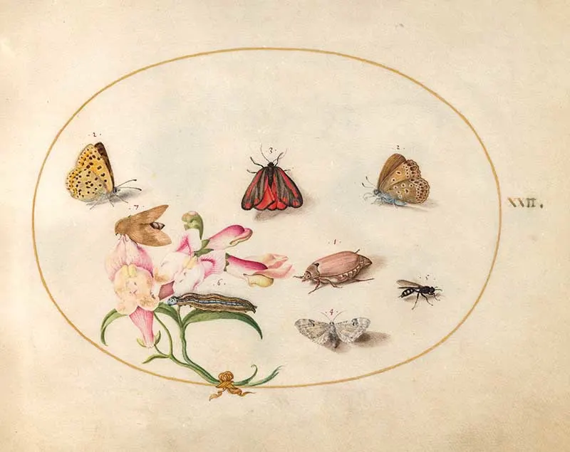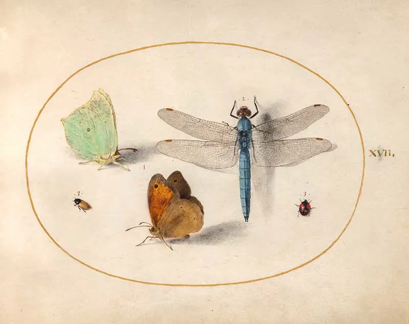 These insect illustrations also influenced the famous Flemish and Dutch still-life art. Especially the still-life flower paintings that often featured insects too.