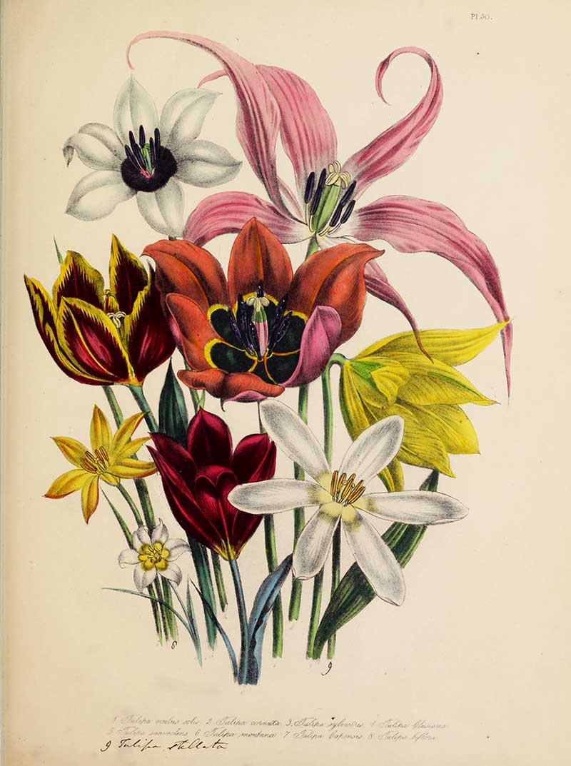 I hope you have enjoyed these gorgeous Jane Loudon bulb flowers. You’ll find many more bulb flower prints in this collection of Renaissance Flowers and mountain wildflowers.