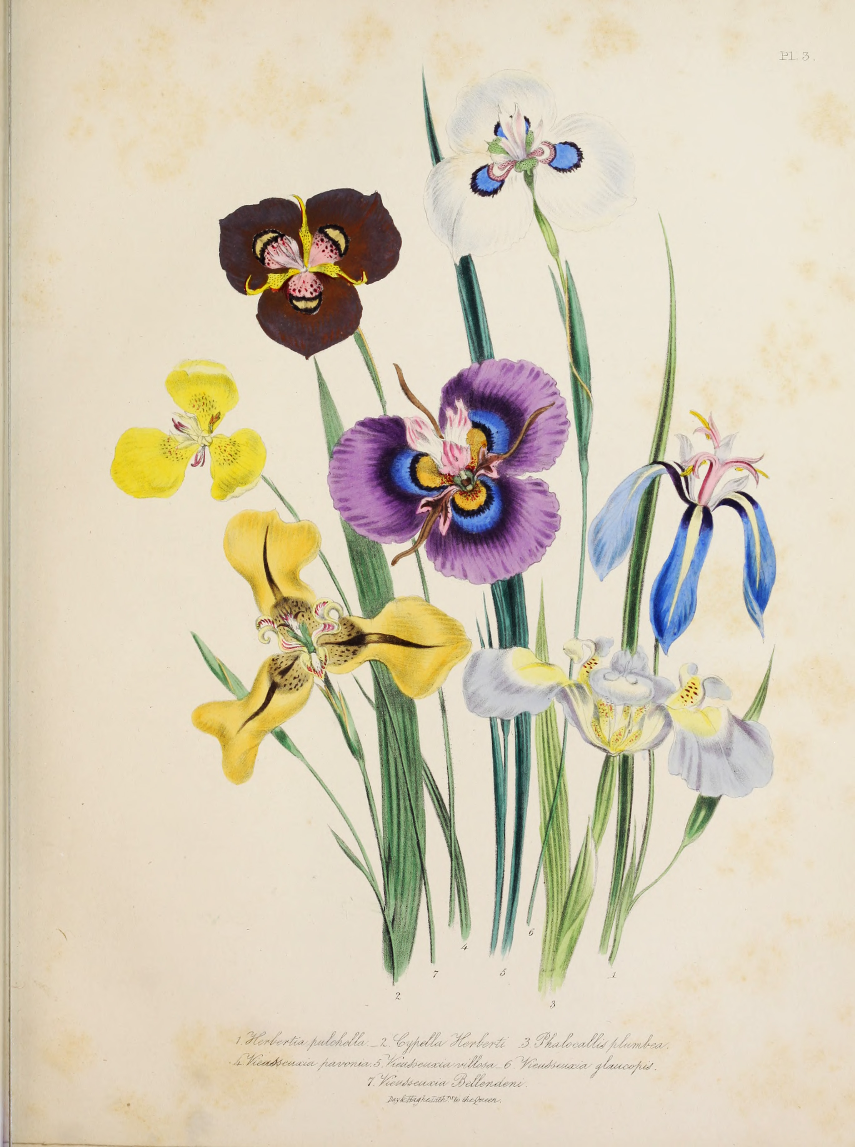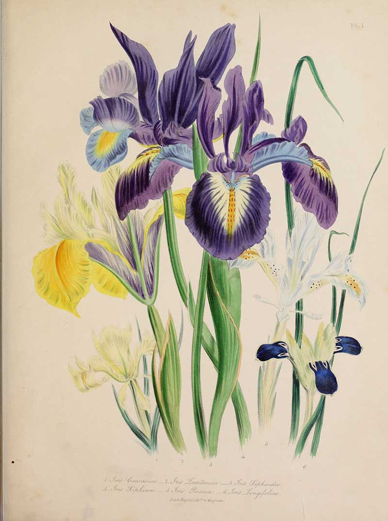 “The bulbous Irises are few, but their flowers are so beautiful that they are all well known. They are all hardy, and once planted, they are generally left in the ground year after year, without any care being bestowed upon them.“