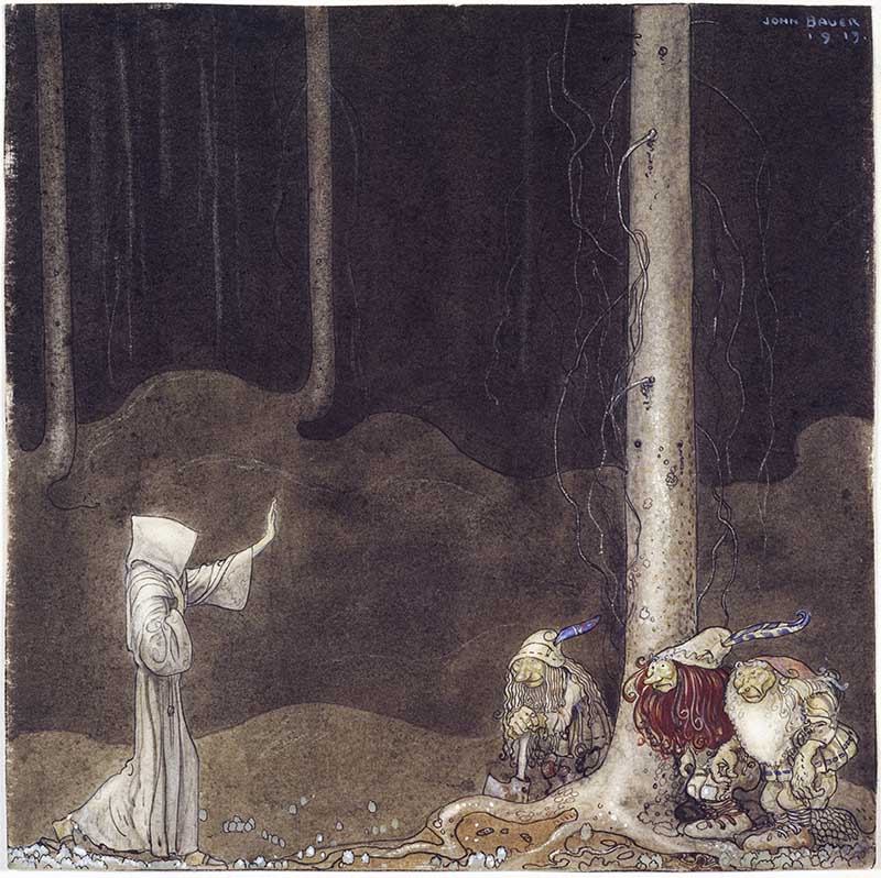 Another colourful John Bauer illustration from the 1915 edition of the anthology Bland tomtar och troll (Among Gnomes and Trolls).