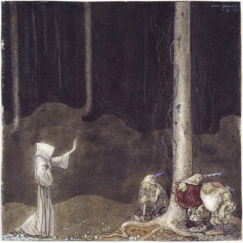 Delve into the enchanting realm created by John Albert Bauer. A renowned Swedish artist whose work breathes life into Sweden’s fairy tales and folklore. Bauer’s anthology of public domain artwork opens a gateway to a world where magical places, beings and mystical forests captivate the imagination.
