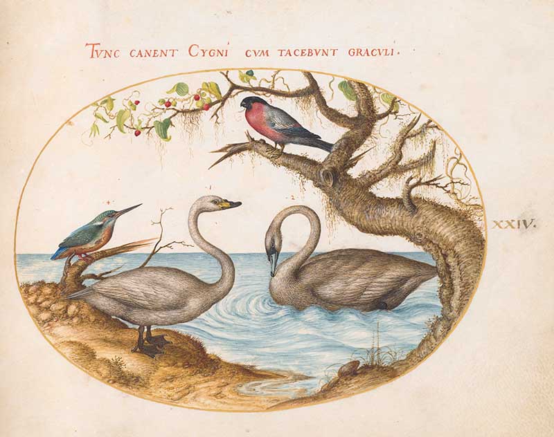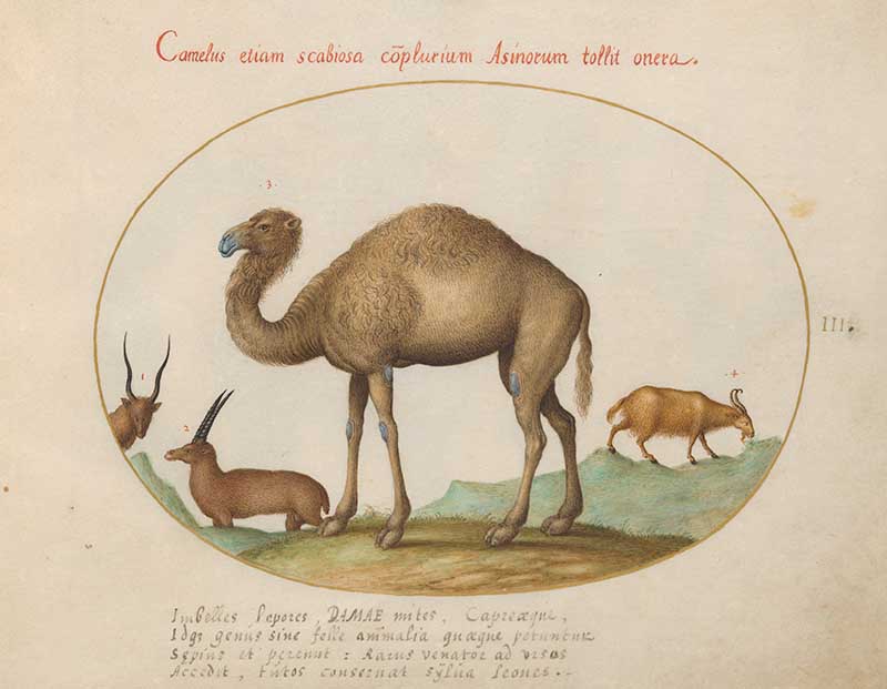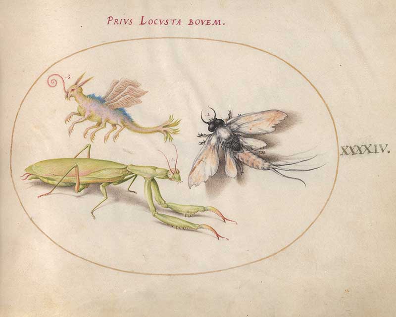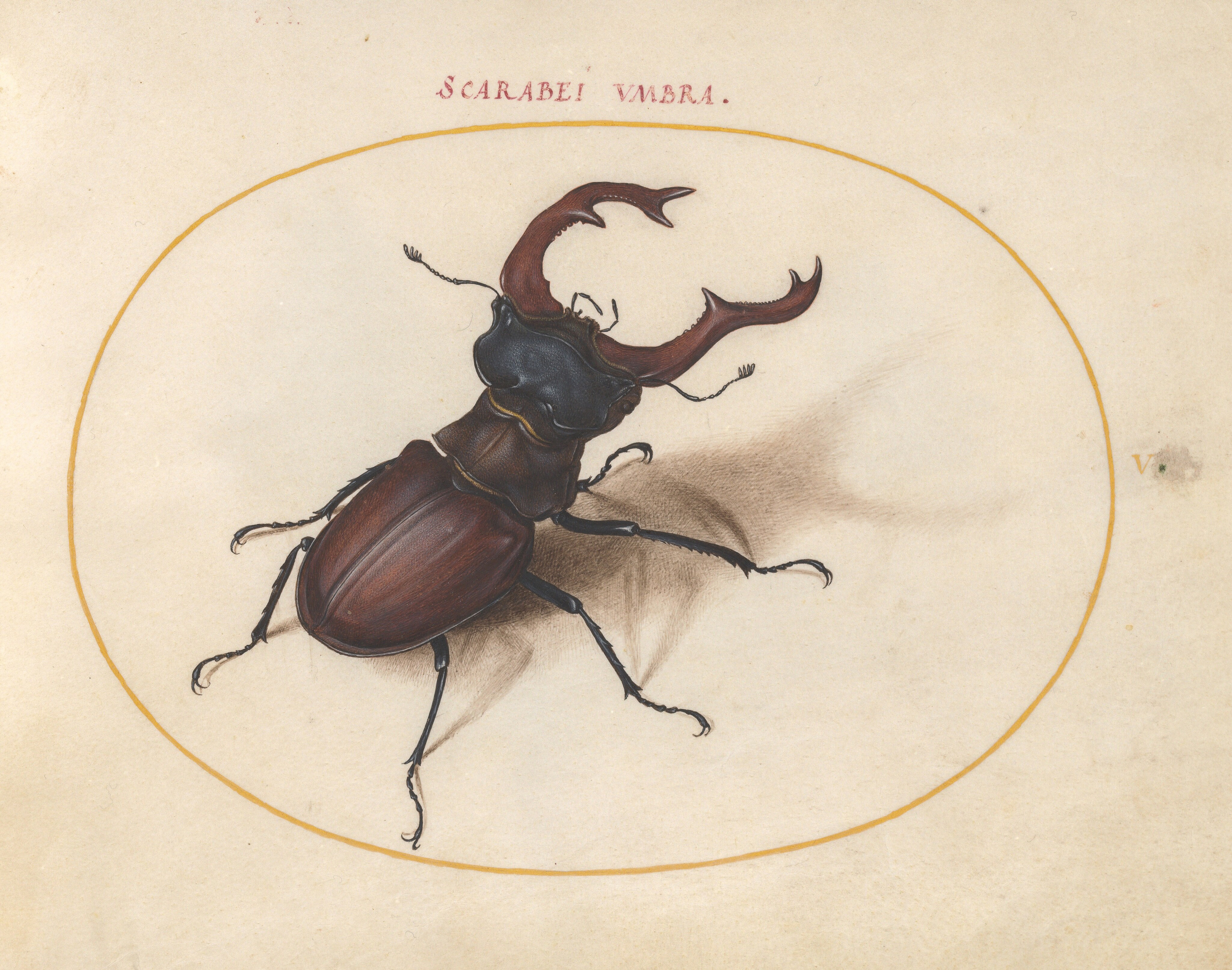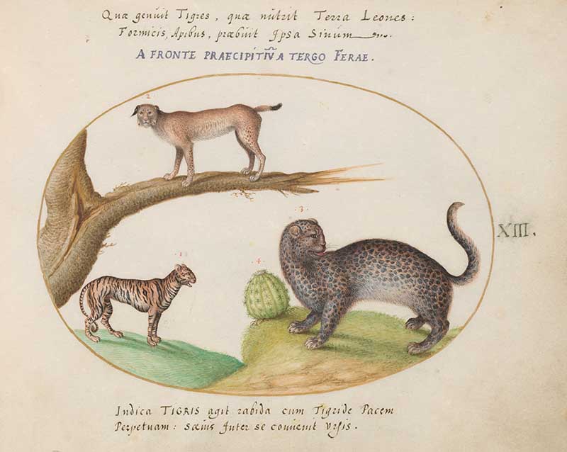 Interestingly, Hoefnagel often juxtaposed large animals with small creatures, such as insects, emphasising the vast diversity of land-dwelling life. This contrast may also reflect Renaissance curiosity about scale, nature’s interconnectedness, and the idea that even the tiniest creatures were just as worthy of artistic study as the grandest beasts.
