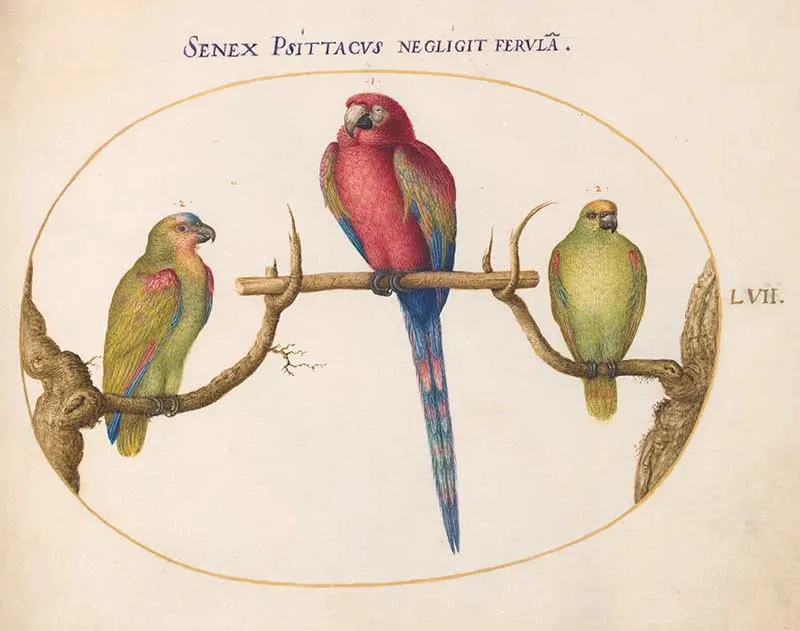 African Grey Parrot, an Indian Ring-Necked Parrot, and a third parrot. Check out Edward Lear’s famous parrot paintings for more fantastic parrot prints.