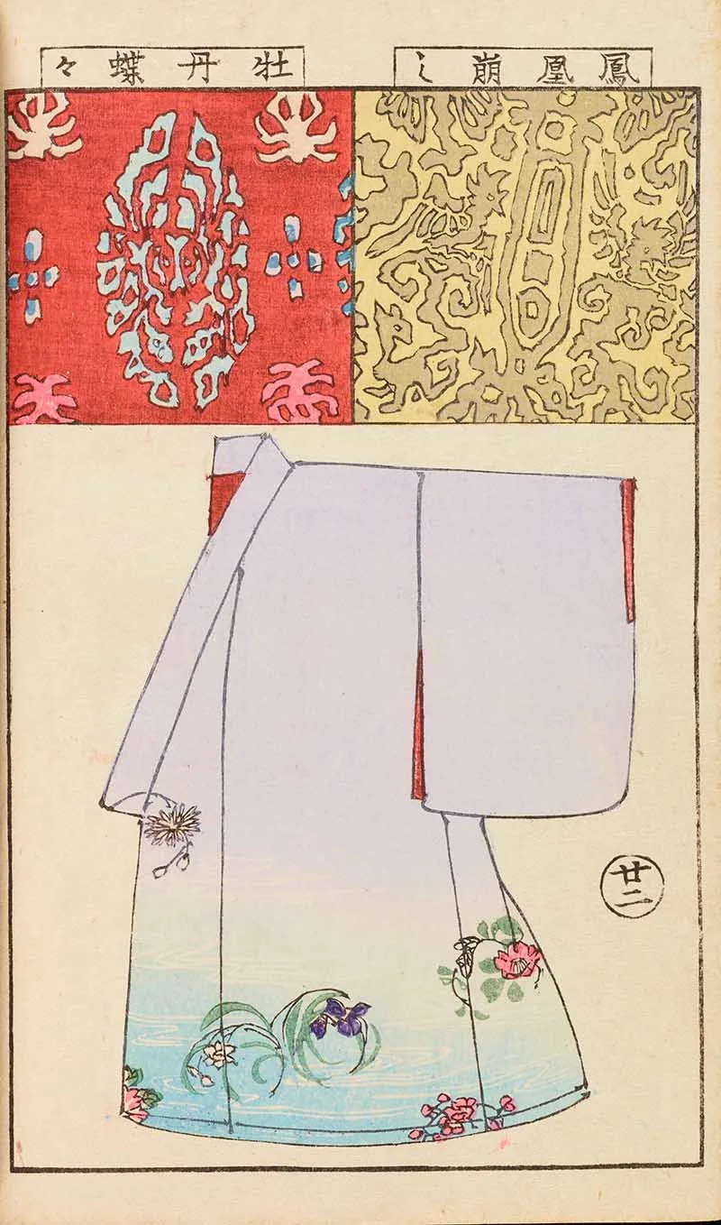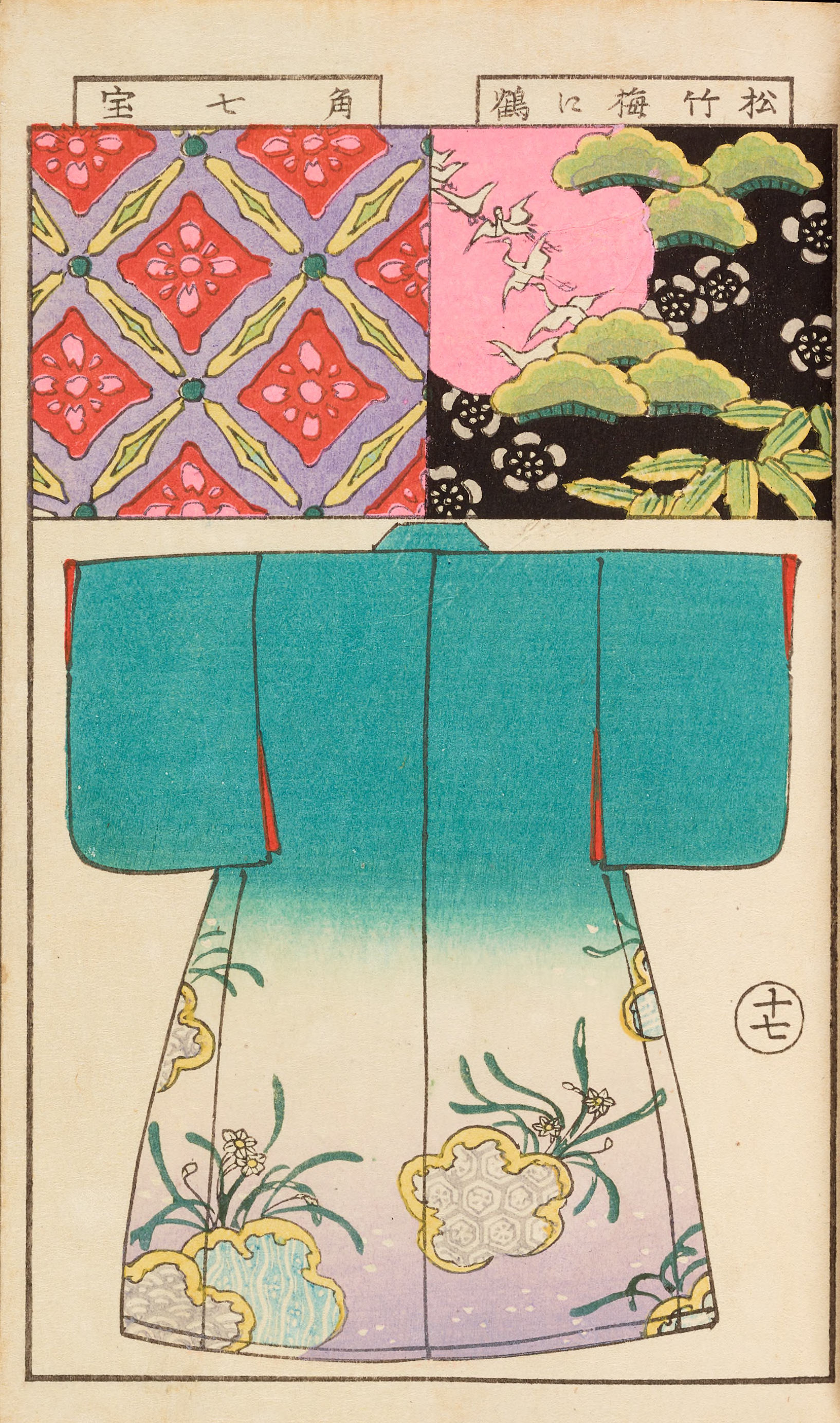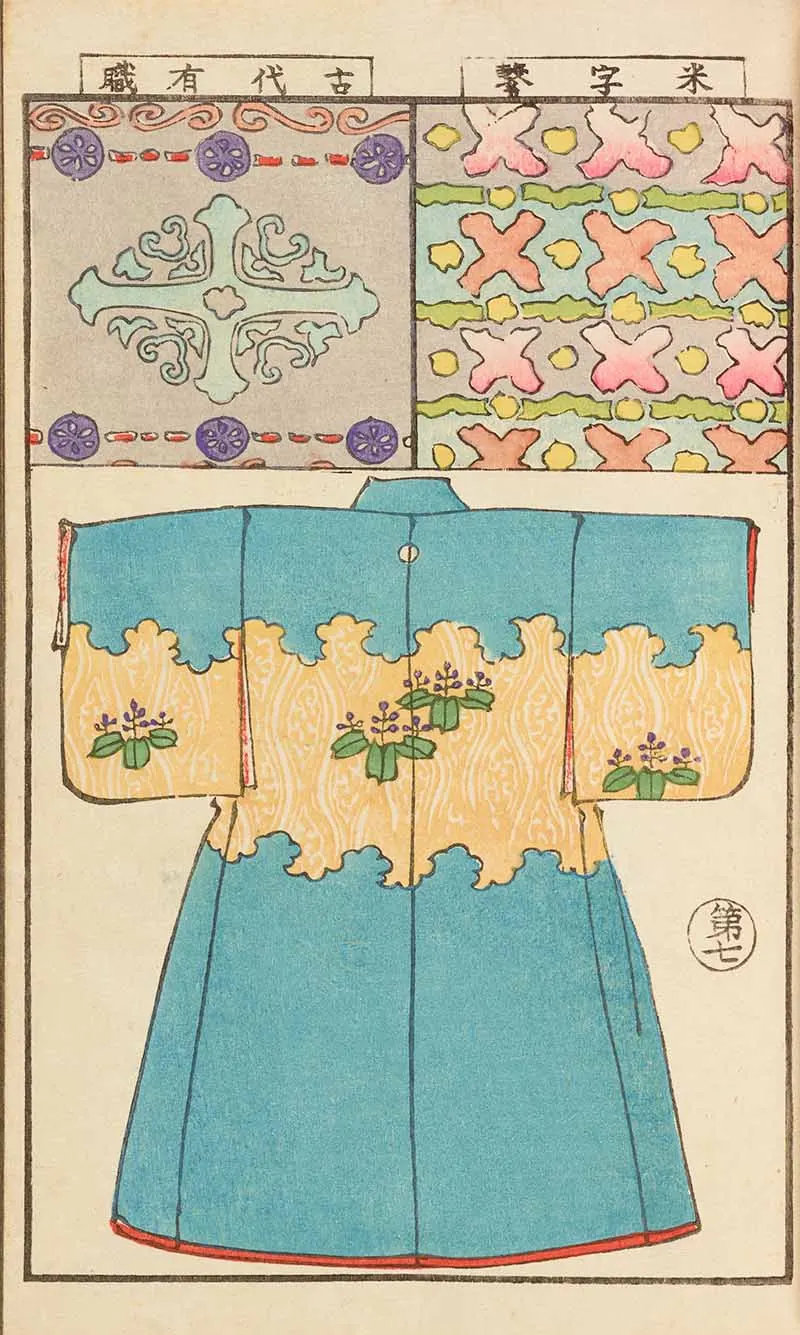 These prints are from the “Moyō Bijutsu Benran,” a gem from 1893 by Hironobu Asai. This book is full of stunning traditional Japanese textile designs, focusing on the beautiful patterns found on Kimonos.