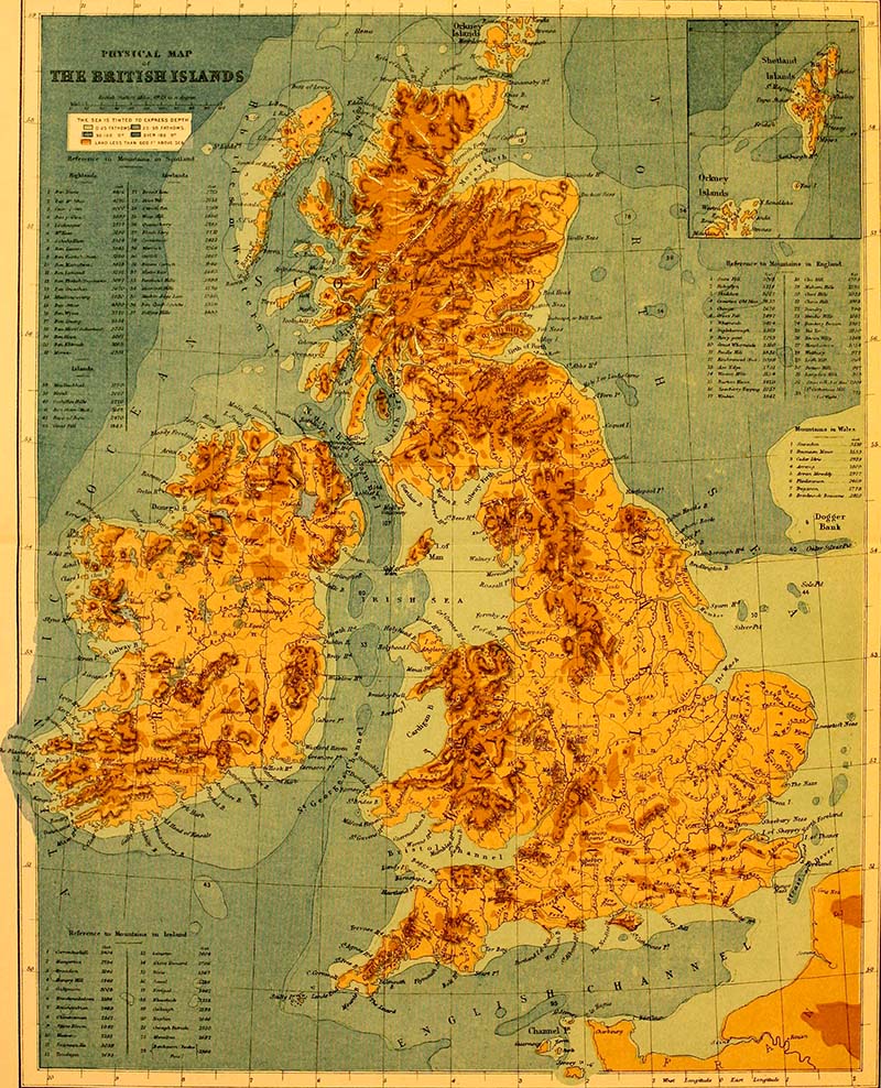 This is a physical map of the British Isles from the book “The Earth And Its Inhabitants” 1881. A classic illustrated geography book by Élisée Reclus.
