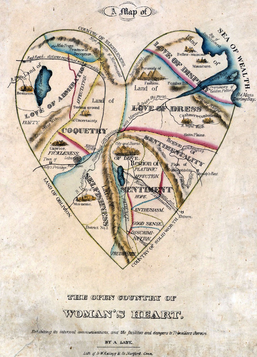 Other maps of love in this collection include a map of the sea of Matrimony and a map of a woman’s heart.